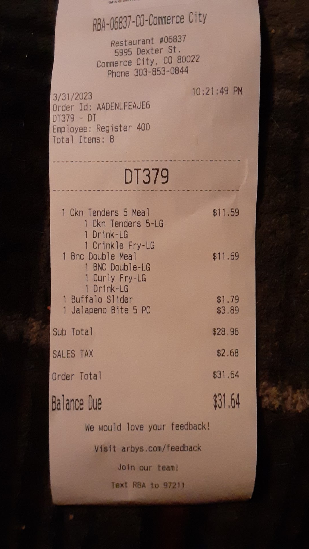 NOTHING ABOUT THIS WAS A GOOD ARBYS EXPERIENCE. My coworkers and i will be avoiding arbys from now on bc of this...