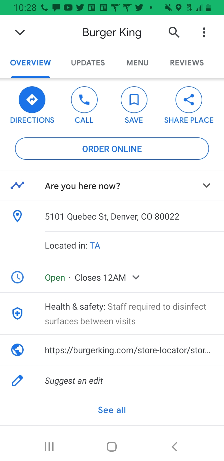 So their website says open till 12:00 am...they really close at 10:00 pm The phone number comes up with a Boulder address and a Denver phone number but when you call it, a message says the number is not working ...TA it's self is great, clean bathrooms, super nice security people, but SPENDY! Overnighting is hit and miss, some times it's ok to sleep in parking area, sometimes you get told 2 hours max, sometimes your left alone but woke up at 5:30 am and told you can't sleep over night or you can but have to be in certain area...Friend bought a pack of Marlboros...so stale they wouldn't stay lit! But it's well lit at night, nice dog park and a fantastic prairie dog community lives at park! Cute little guys! Staff is very friendly but some don't know a whole lot about services, etc. Restaurant has excellent food, reasonably priced and very outgoing waitresses! Overall, other than a riding the BK, great place to stop. There's also a Pizza Hut and Popeyes for a nice variety. For the post/review below ..there's no drive through...