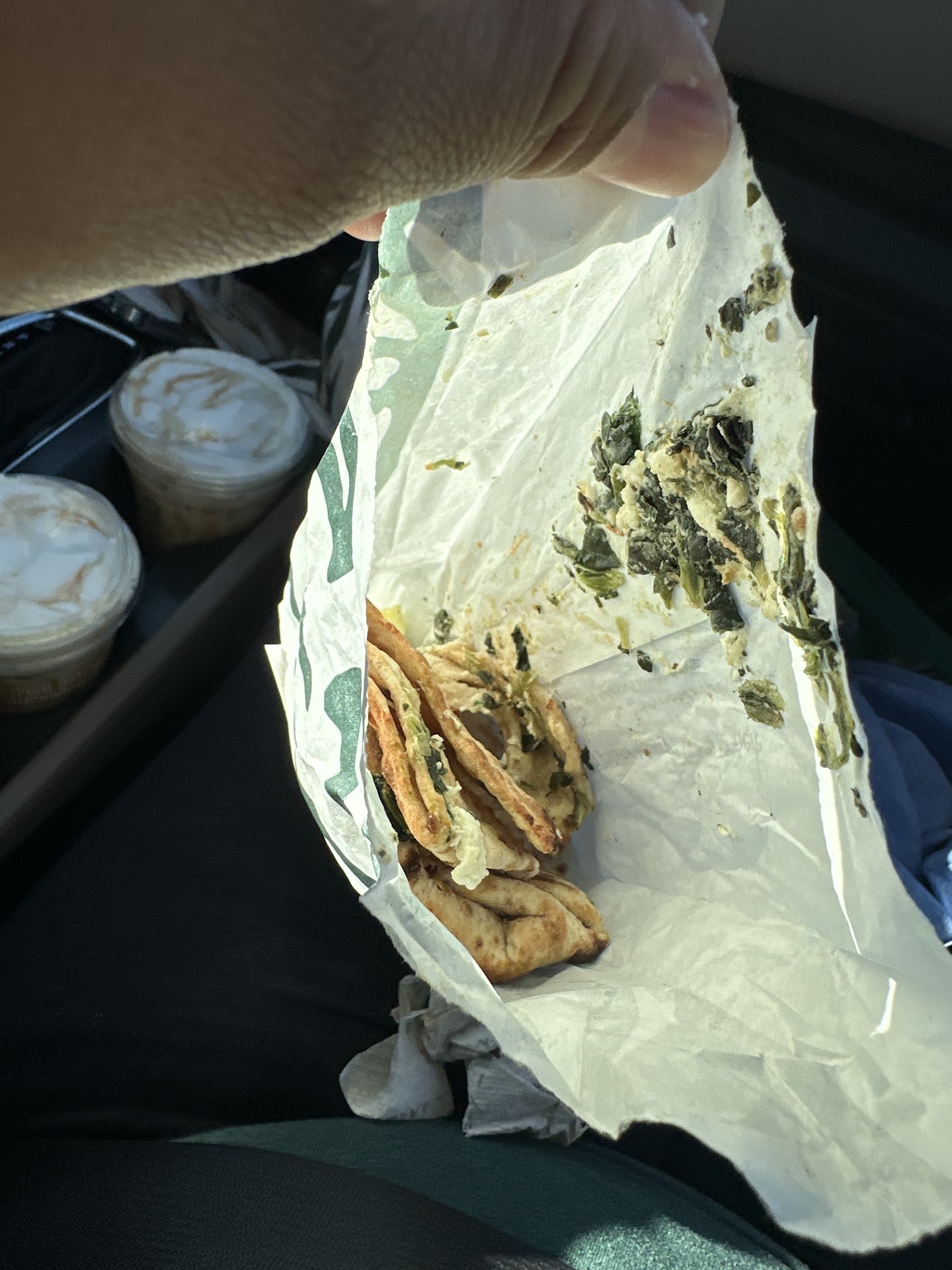 next situation is similar but far more frustrating. i wait in the drive thru and order an everything bagel and some coffee- the interaction begins by them asking if i want anything to eat, which i replied by asking if they had an everything bagel, they say yes. i request it warm with cream cheese and continue my order. get to the window, pay for my order. receive my coffee and then get told that my bagel is now unavailable because they sold it to someone else- after i already paid for it. employee offers me another bagel, to which i said i paid for an everything bagel and i want it refunded. they diddle on the register then grab another employee who asks what replacement bagel i want- a plain one- and tells me they will have the other refunded.