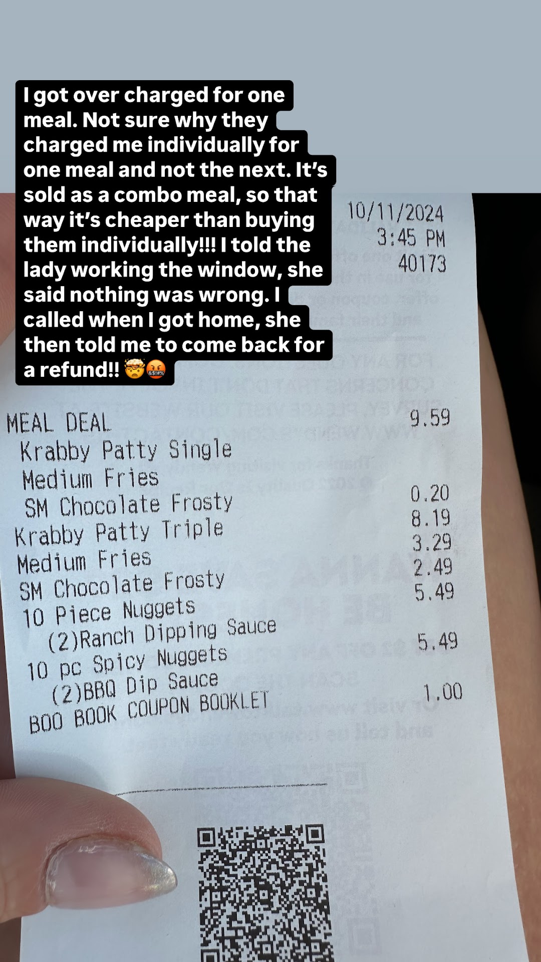 I RARELY leave reviews but this place made me very upset. This place cannot handle the volume of customers in the evening.. I usually go through the drive thru but there were about 8 cars in line so I decided to go inside. I’m the only one in line and the manager asks me to wait a minute. I said no problem but after 5 minutes of watching the manager and the others only help the drive thru customers, I asked if I could be helped. People were now gathering in line inside. She finally came to help me and I ordered a very simple Biggie Bag order for my kids. I waited inside for over 16 mins before they even looked my way. I watched them clear out over 12 drive thru orders before I got upset and let them know how I felt. When I made it known about my order, the young girl said oh, you had the Biggie Bag and started to put my order together. I was furious and All they said was we’re sorry. Customer...