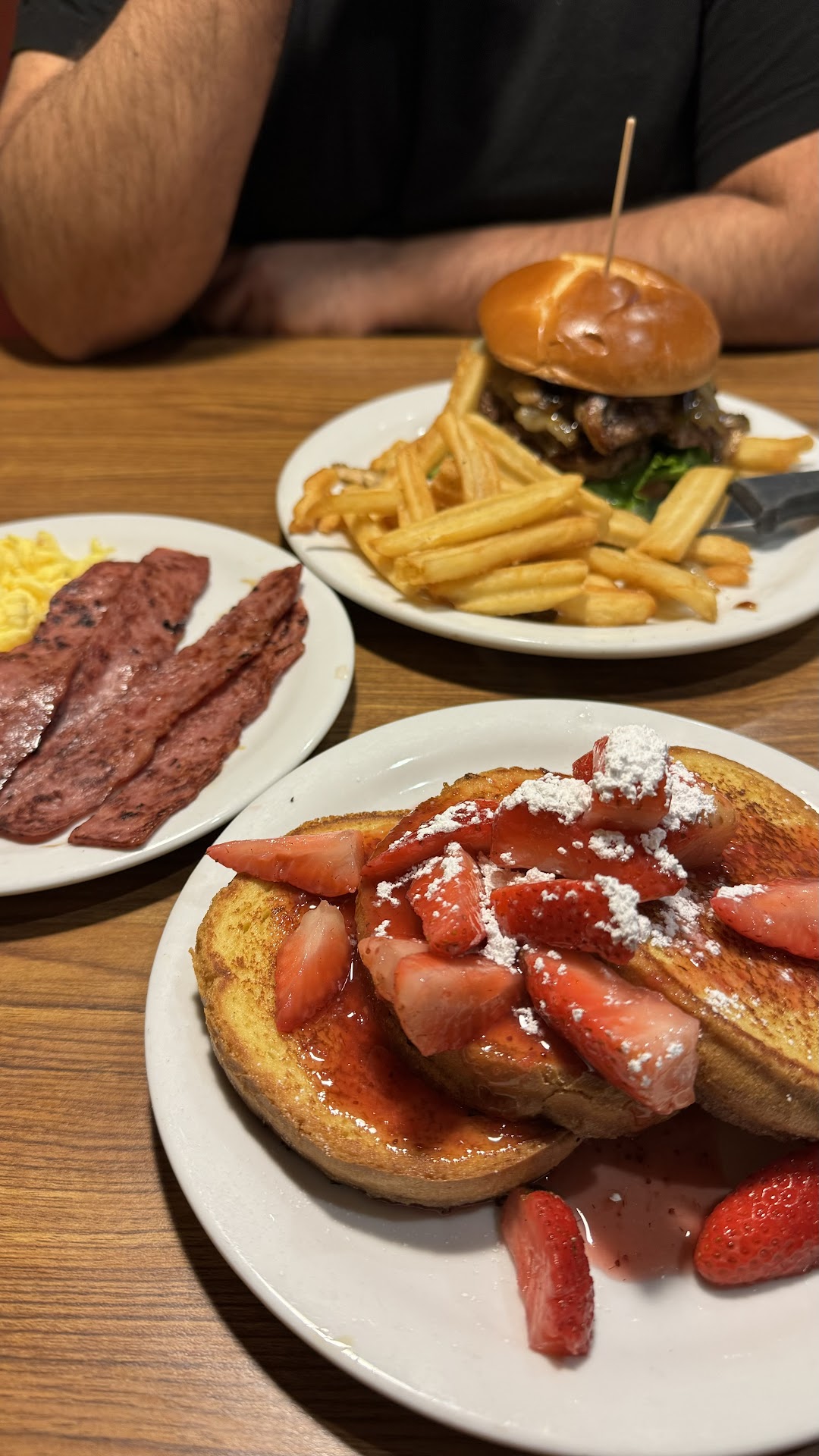 Read moreI came in to have the new endless breakfast. We came in confused since no one had bothered to ask us dine in or "how many people". We waited until one of the employees asked me. I said 2 people and then we were seated at a table that was dirty. The host did clean it, and once it was clean we sat down. The host left and decided to help someone else and then gave us menus. We looked at our menus and the host didnt help us until 20 mins after then asked us what we wanted. My friend was very excited to get milkshakes and we asked and then the host was instantly dismissive amd said there wasnt any available. Its 11am so i dnt know how thats possible. She left and we waiting almost 30 mins for our food. We ate our food within 20 mins. And we were waiting for our host to return to ask if we wanted another round and coffee. She kept on passing by and looking at us but never bothered to ask us if we wanted anything. She finally came to us and asked if we needed anything so my friend and i asked for coffee i was about to ask for more food but she quickly left. We waited more time and we interrupted her when she was helping someone else and ask for more food but before i could tell her to change the way our eggs were made she left! She had came back to help someone else and after she helped that person i asked her if it was possible to change the way our eggs were made and she rudely said "i already ordered your food, shouldve told me earlier." My friend and i both looked at each other and we said ok. We got our food but my friend didnt get utensials. So we waited again and the asked and finally after finishing our food. We are waiting again and its been 15mins since we finished and we are waiting for our check.