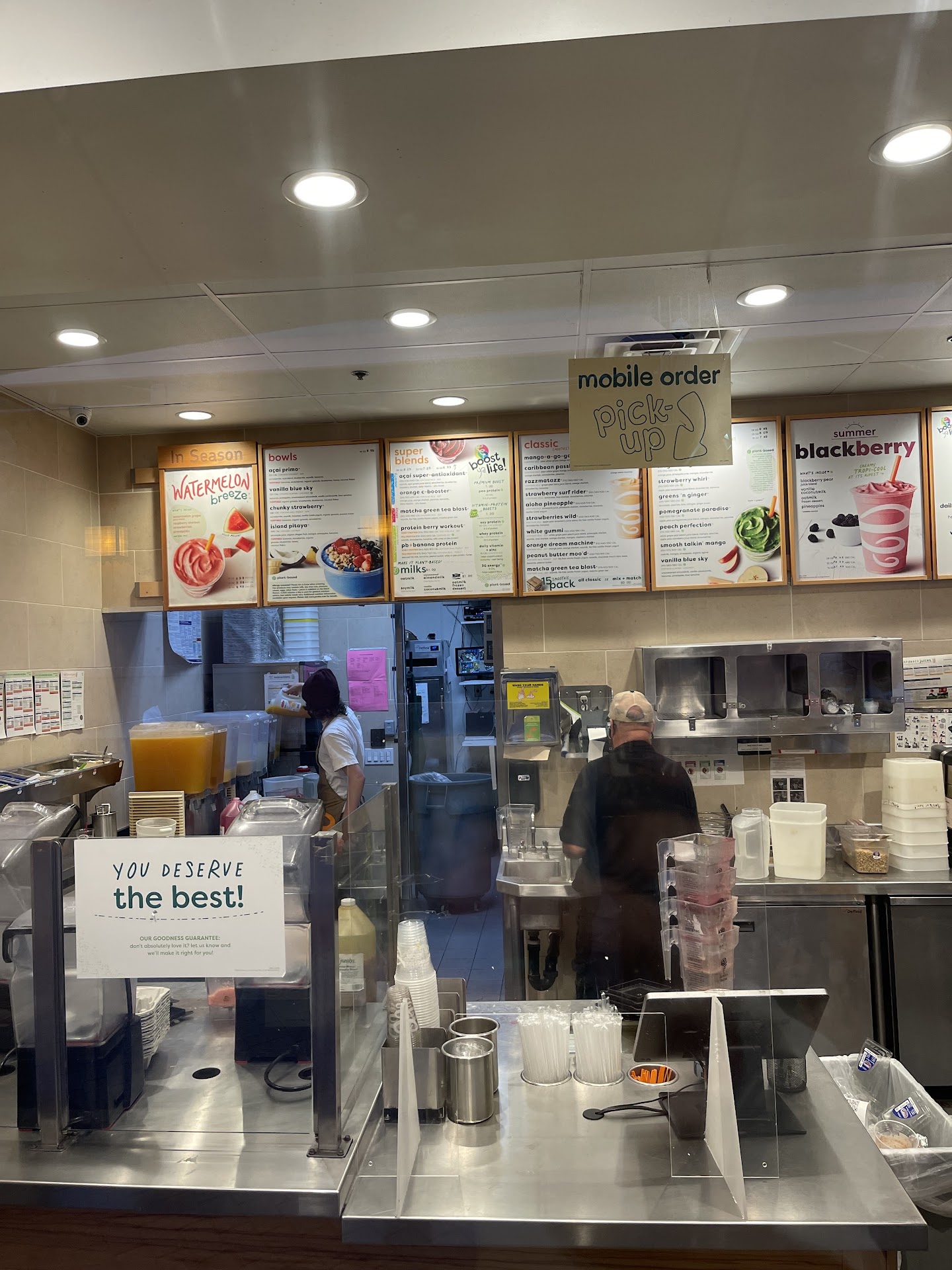 Read moreWorst Jamba Juice experience I've had. Customers around me were getting pretty agitated from not receiving their orders despite many customers who ordered long after getting their smoothies first. I received my smoothie relatively quickly, but it was a melted, chunky disaster that was incredibly unpleasant to drink. It was just a cup of fruit chunks swimming in melted sherbet. I threw it away after a couple sips; the store seemed so overwhelmed and disorganized that trying to get a replacement or refund seemed like more of a headache than it was worth. One of the things I love about Jamba Juice is the consistency--you know what you're going to get. So, this experience was particularly baffling and...