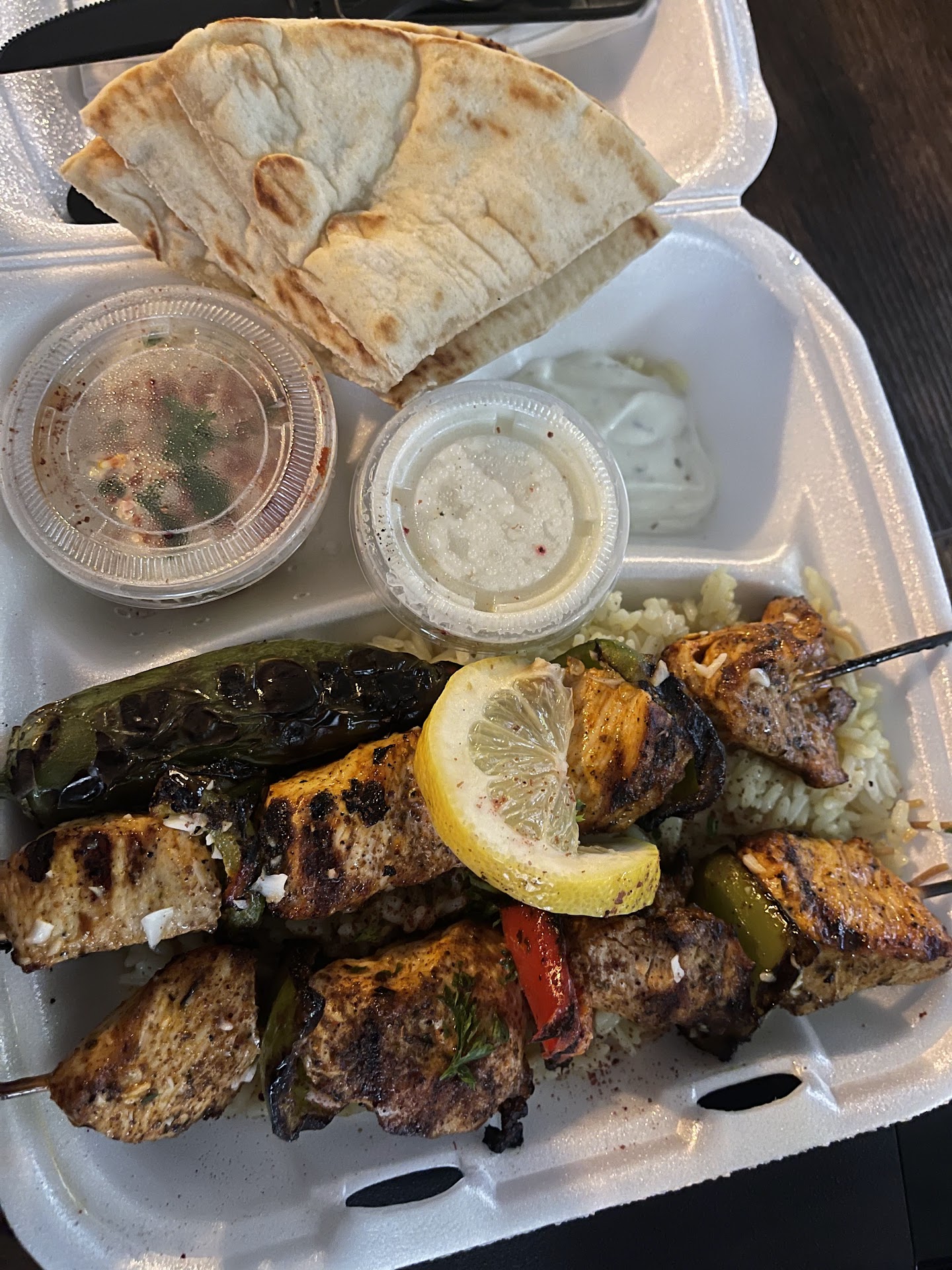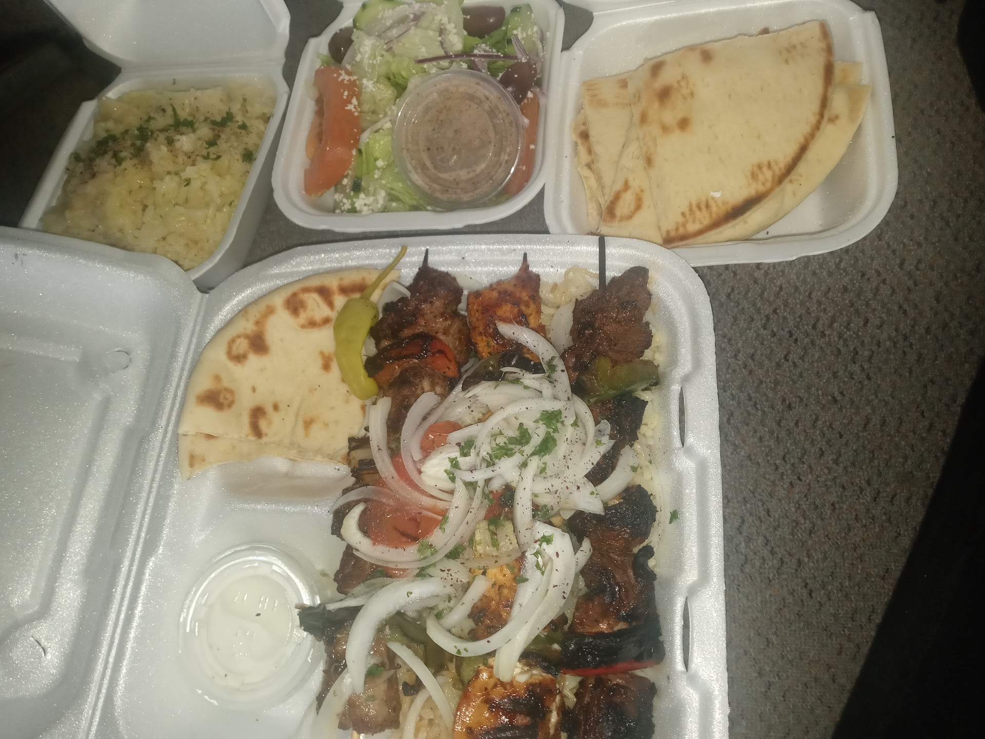I usually love Greek food. This place I don't love. Came in and ordered 2 plates, one chicken beef the other beef lamb. I received 2 plates containing beef and chicken. The hummus was sour, the fries were bland and some still raw in the center. I also ordered baklava. Whatever I received was nowhere near baklava. It was hard in the center, tasted awful and flakes were closer to dust than buttery heaven. On one of my plates we ordered rice, but when it came out the counter worker told us they were out of rice, and asked what we would like instead. We replied to switch to a salad, and she said... they had already put fries in the plate. Why the hell would you even ask if you already chose for us??!?! Literally nothing went right here. I ended up throwing away nearly the whole meal. Zero on taste, quality, service, or anything you'd hope to get as a customer. Stay...