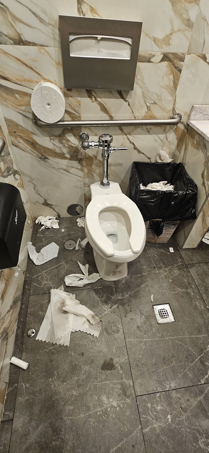 New Year's Eve 2024/2025 Last year we visited Stevens Steakhouse for New Year's eve, we were served a nice sit- down steak dinner, party favors were already at our tables, ample dance room, everything seemed to go fairly smoothly, except the restrooms were grossly last year too and still understaffed, but we decided to revisit this year, Unfortunately this year ringing in 2025, Stevens Steakhouse decided to cheapen the experience by cramming in as many people as possible and making the dinner buffet style, you waited in long lines to get raw prime rib and cold pasta, having to make way since they allowed people on both sides as staff would come in between us literally dumping more food into the trays for refilling, mind you, these buffet tables would later be removed to make room for the dance floor area, there was fragments of leftover food on the Dance Floor since it wasn't cleaned, after we were herded like cattle through the buffet we had to make our way through the overcrowded, crammed and narrow seating area with plate in hand, and good luck getting your cocktail waitress to bring you a drink as they were grossly understaffed, at $110 per seat coffee and tea was not included one cup of coffee cost $5 and all alcoholic drinks were at least $18 each, I feel bad for the people who paid for the $250 seats for no better of an experience, later you had to wait in more long lines for the desert area (one small table), as the staff were frantically cutting whole cakes into slices, this should have been done ahead of time, when we finally got a Slice of Cheesecake it was still frozen, people were also walking around looking for utensils as the staff had picked up our dinner plates and no one thought to have forks available for the cake, I personally walked over and asked someone in the kitchen for forks, but I saw other people also lost looking for utensils, after we finished our dessert it was time to fight the mob for the party favors, there was one guy by himself handing out party favors as a larger and larger crowd formed with people becoming upset as everyone tried to grab for party favors at once, this was a packed house and they had one person handing out party favors. Now it was time to dance, that's if you could find any space on the overcrowded and much smaller than last year's dance floor area, the music didn't start until 10:00 p.m. which gave most people only about 2 hours of dancing, last year since there was no Buffet tables on the Dance Floor people were able to start dancing much earlier, also I should mention this was a sold out event but Stevens was still allowing more people to come in at 10:00 p.m. for $30 per person, this means all of us who paid more for our seats and dancing had to share an overcrowded dance floor with people who came in at 10:00 for significantly less, this was a salsa dancing event, it was extremely difficult to try to dance without getting stepped on, stepping on someone or hitting someone else with so many people, now let's talk about the restrooms, there is an upstairs restroom that has no ventilation and is always extremely hot like a sauna, I went to the downstairs restrooms, they looked as though they had not been cleaned even before the event, but no one was cleaning them during the entire event, I asked Steven's staff twice to have the restrooms cleaned, it was never done, the floors were covered in urine and toilet paper and toilet seat covers, there was toilet paper and trash everywhere, again, this is a salsa event, you have women in Suede bottom Shoes trying to dance with shoes covered in urine and toilet paper stuck to the bottoms, people were warning each other as we walked into the restroom and trying to get wet toilet paper off of their shoes, it was disgusting, I did get a few photos of the restroom but unfortunately I didn't get a photo of the restrooms at their worst. Steven's got greedy...