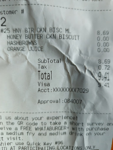Read moreI’m a Uber Eats driver, and would like to share my experience about this particular Whataburger and morning manager. So upon arrival I entered and got the customers food, then I realized it was extremely cold. Her breakfast was cold including her coffee, so I asked the cashier is it possible for a remake as I didn’t want to deliver cold food cause it messes up my Uber ratings. The cashier agreed but the manager came from the back being rude asking me why didn’t I leave out on time etc….. I’m guessing she doesn’t know how the app works… the order was placed at 8:33am… either no one accepted it to deliver around that timeframe or there just wasn’t anybody to deliver in the area. I didn’t wake up until 9:15ish to start work, and that was the first thing to pop up AT 9 something…. So she blames me says I left out late when in reality the delivery popped up on my trip radar around 9am when I woke up. With that being said I ended up having to pay outta pocket for the customers new food when I am not the one who...