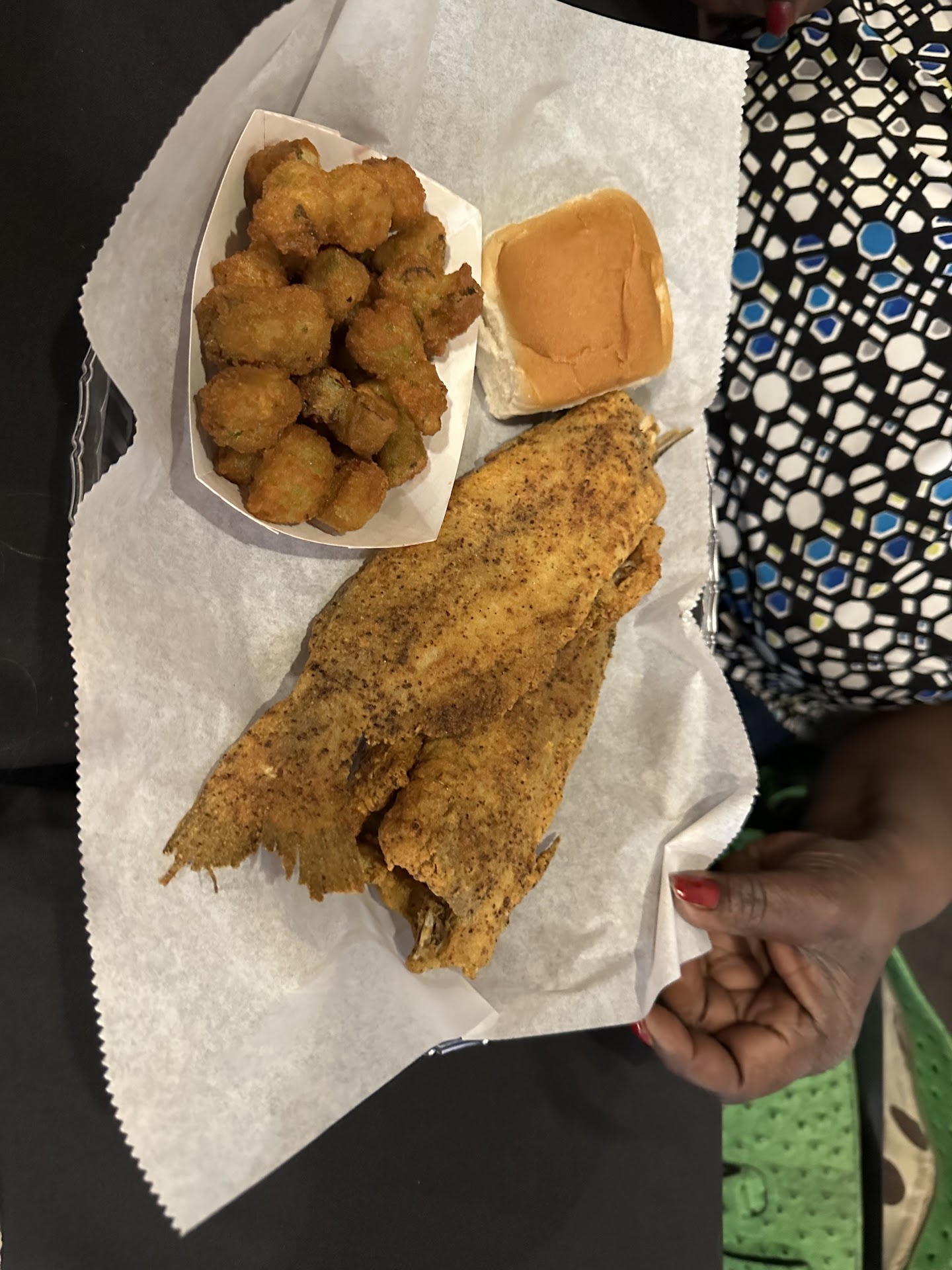 Read moreFriendly, courteous service, I placed a to go order. USA farm raised catfish fillets fried to perfection but could use more seasoning. The sweet potato fries and fried okra were tasty and a hefty serving given. Also I think you have to ask for condiments since I...