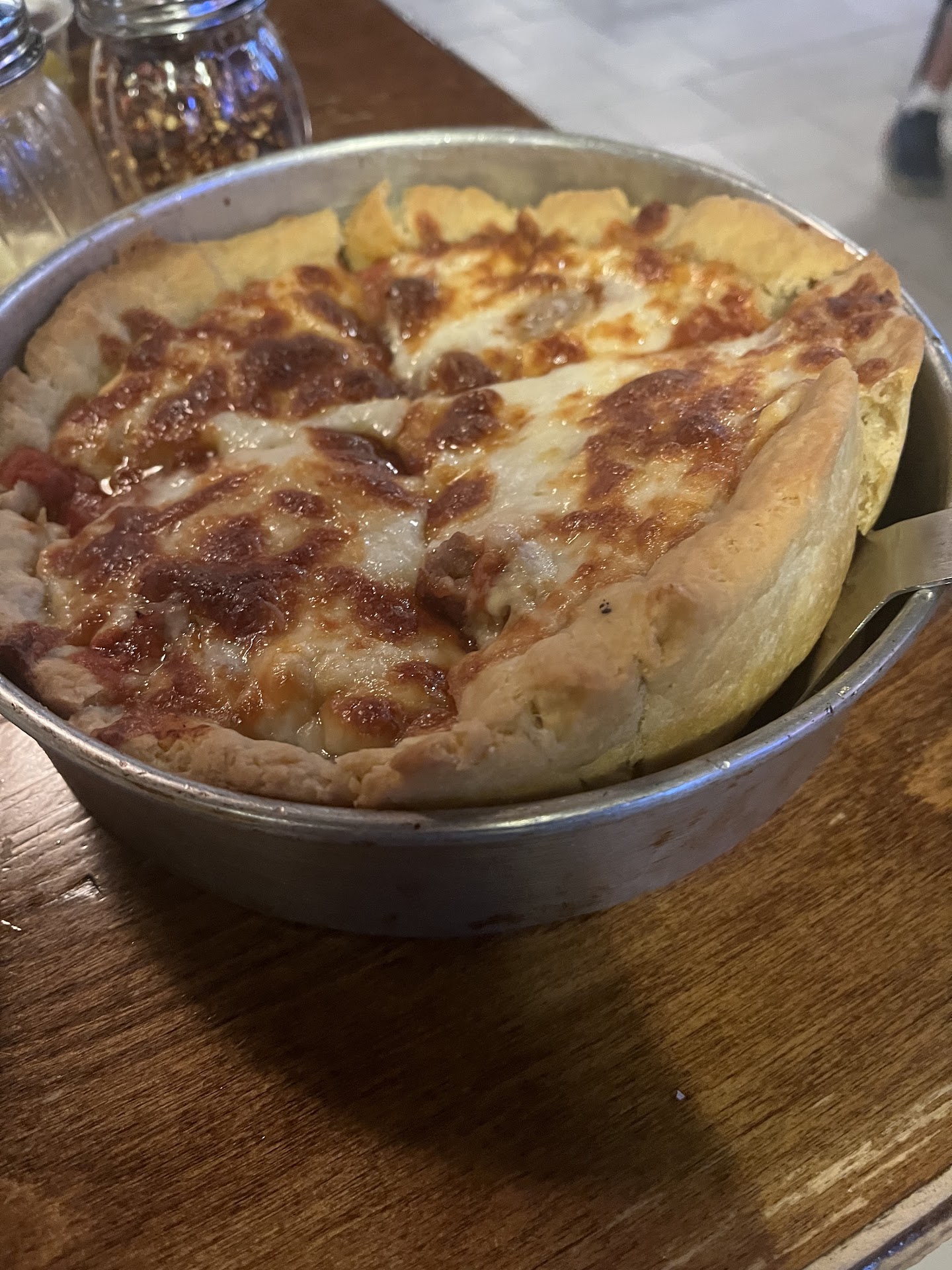 As for the food, it was mediocre. We got a thin crust pepperoni, Chicago style meat lovers, and thin crust supreme. They all had the same crust, so if you’re expecting a crust conducive to deep dish you are going to be disappointed. The only good thing about the pizza was that they do not skip on the toppings. They’re pizza is actually toppings with a hint of crust. One thing to note, we had olives and mushrooms added to a pizza. The olives and mushrooms were uncut (not sure if this was intentional or was just lazy). The mushrooms are also canned, so if that’s not your thing stay away from them.