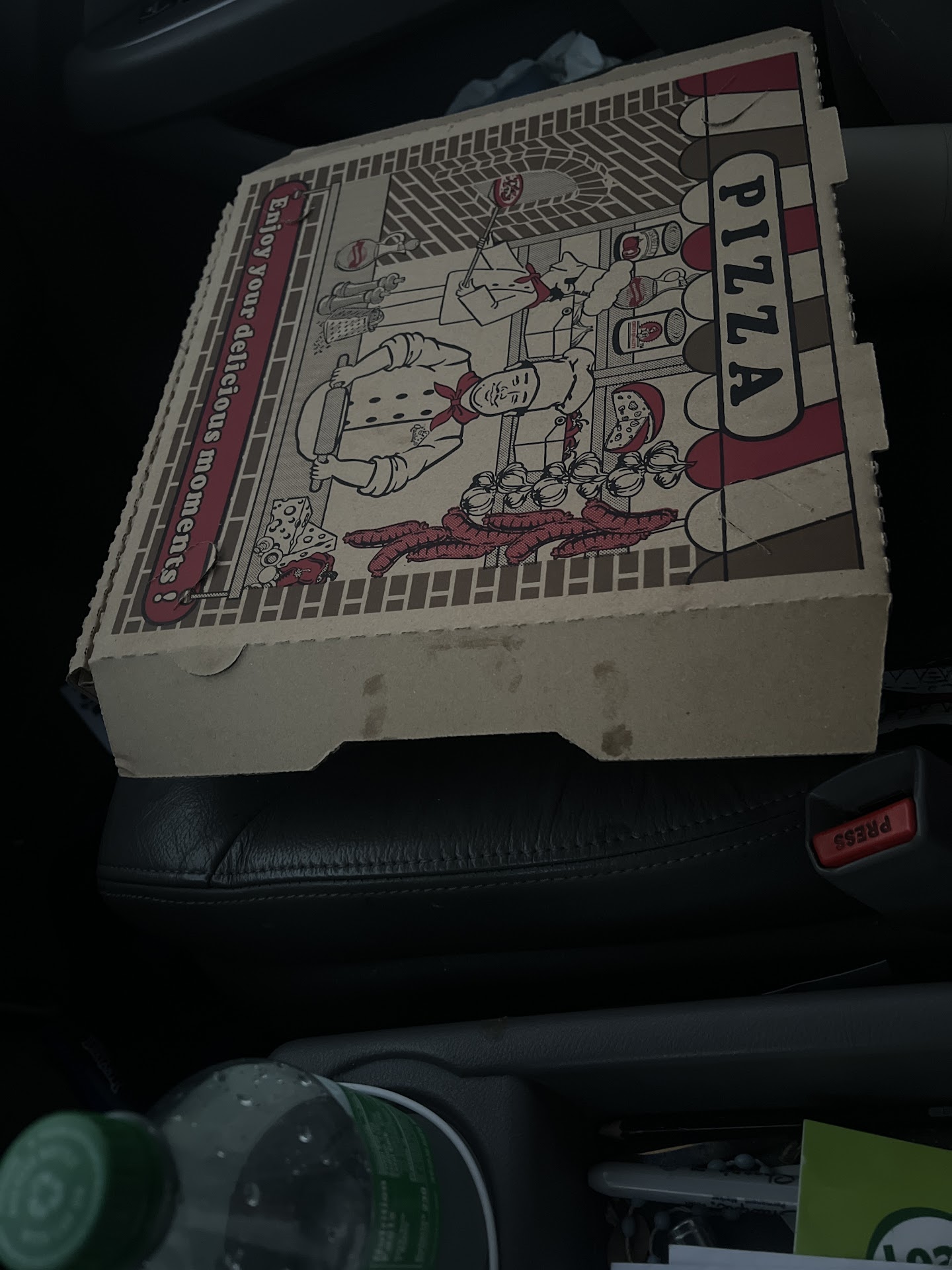The pizza is simple but delicious. Regular crust is the perfect thickness for me. A little crunch but still soft.
