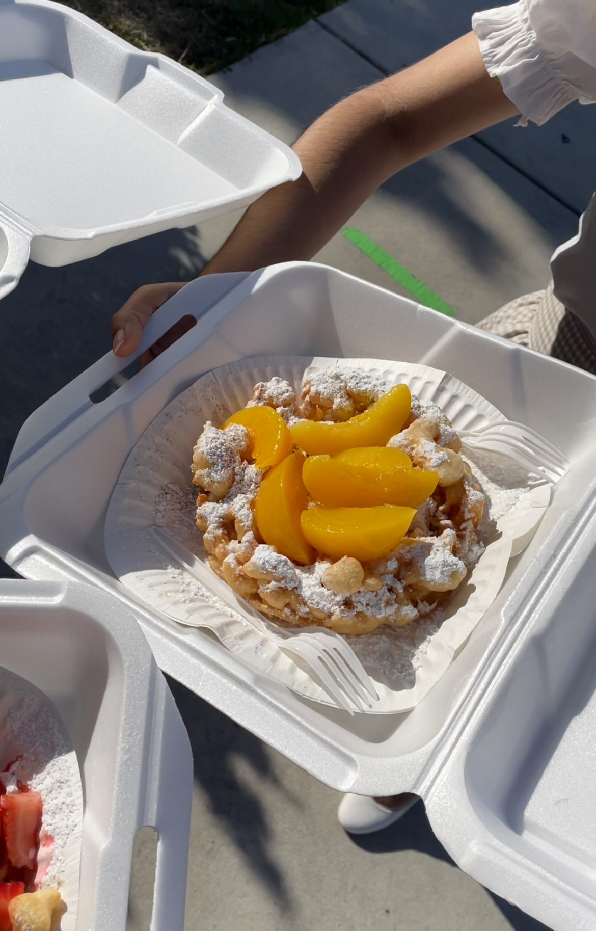 Upon placing your order, the enticing aroma of freshly prepared funnel cakes fills your senses, setting the stage for a mouthwatering experience. Each cake is crafted to perfection, golden-brown and crispy on the outside, while being soft and fluffy on the inside. The sweet strawberries and velvety vanilla ice cream toppings take these treats to a whole new level of deliciousness.
