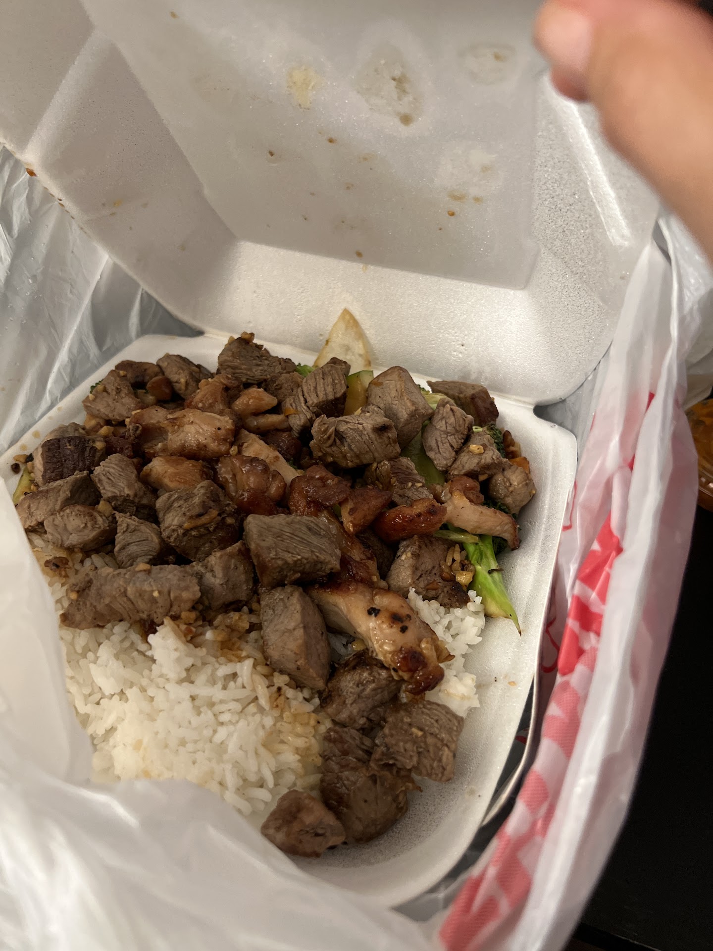 Read moreMy husband just worked a 15 hour shift, and I ordered thinking this place was good. After I read the reviews I was so scared! I thought I had bought my husband some junk. I’m not sure where the bad reviews came from? Maybe it’s because I didn’t get to meet the cranky employees? I don’t think I would order the chow mein again, nothing special. But I ordered him white rice with steak, chicken and I ordered some extra teriyaki and some habanero sauce. I did not mind paying the extra $.50 it’s no big deal….. I just popped open this thing to make sure I knew what I was going to put in front of him and I thought it was pretty good! Maybe I caught it on a good day but I would order again. Probably not visit in person just so I didn’t have to deal with the...