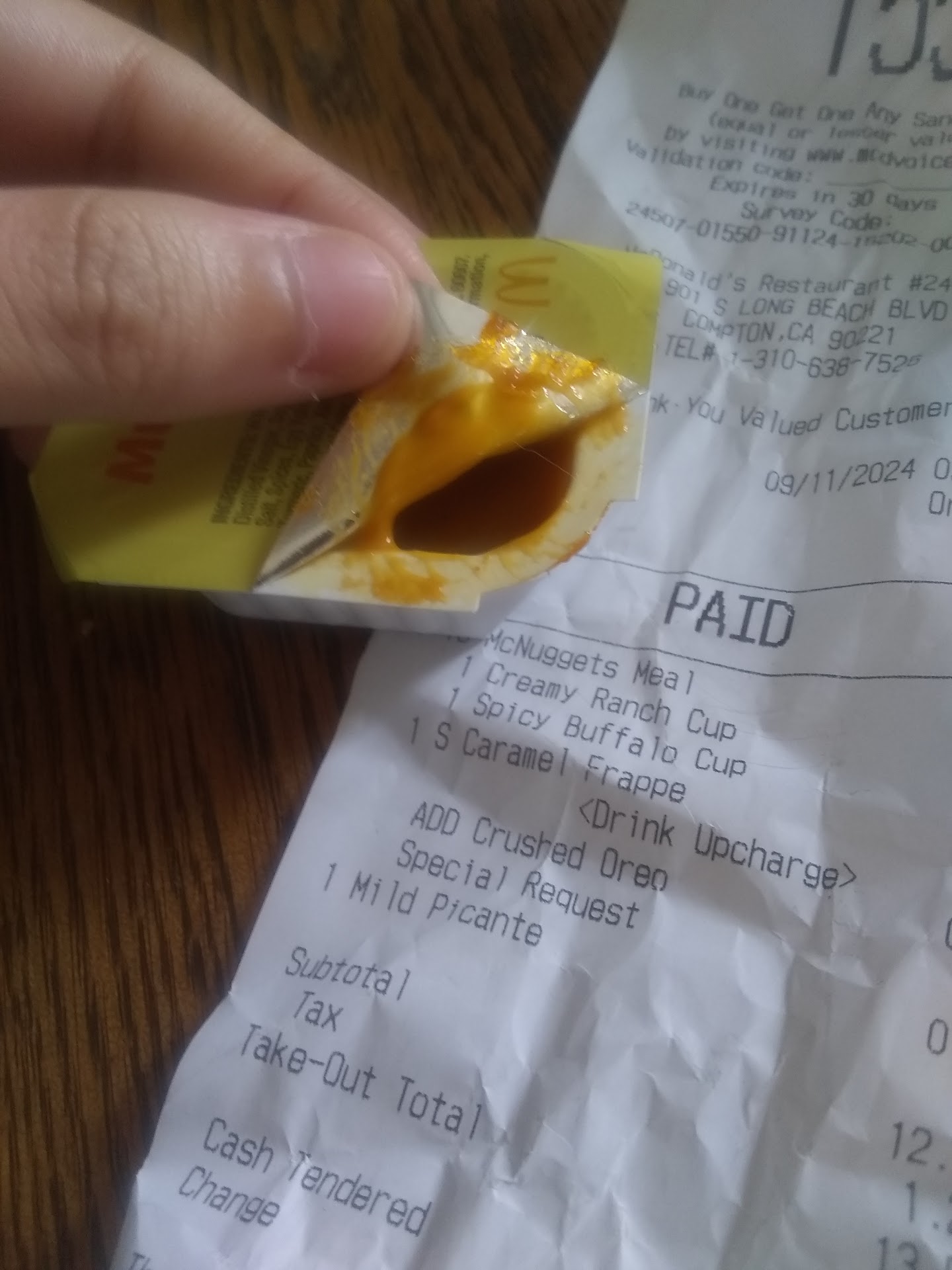 Read moreYesterday on sep 10,2024 I asked for hot mustard for my fries from one of the higher up main managers and she said I had to pay for the sauce which is understandable for the sauce and she said the sauce only comes with chicken nuggets today on sep 11,2024 i got a 10 peace chicken nugget and i got ranch and buffalo i also told the cashier to add hot mustard instead she put mild picante i asked that same manager for hot mustard and how the cashier put the wrong sauce and she told me i still have to pay and i said im not gonna get in that big line again for one sauce fpr the cashier mistake that main manager gave me a ugly face and gave me a open hot mustard. Very rude main managers they need to go back in training I also work at Macdonald and I would never treat my customers like not even my...