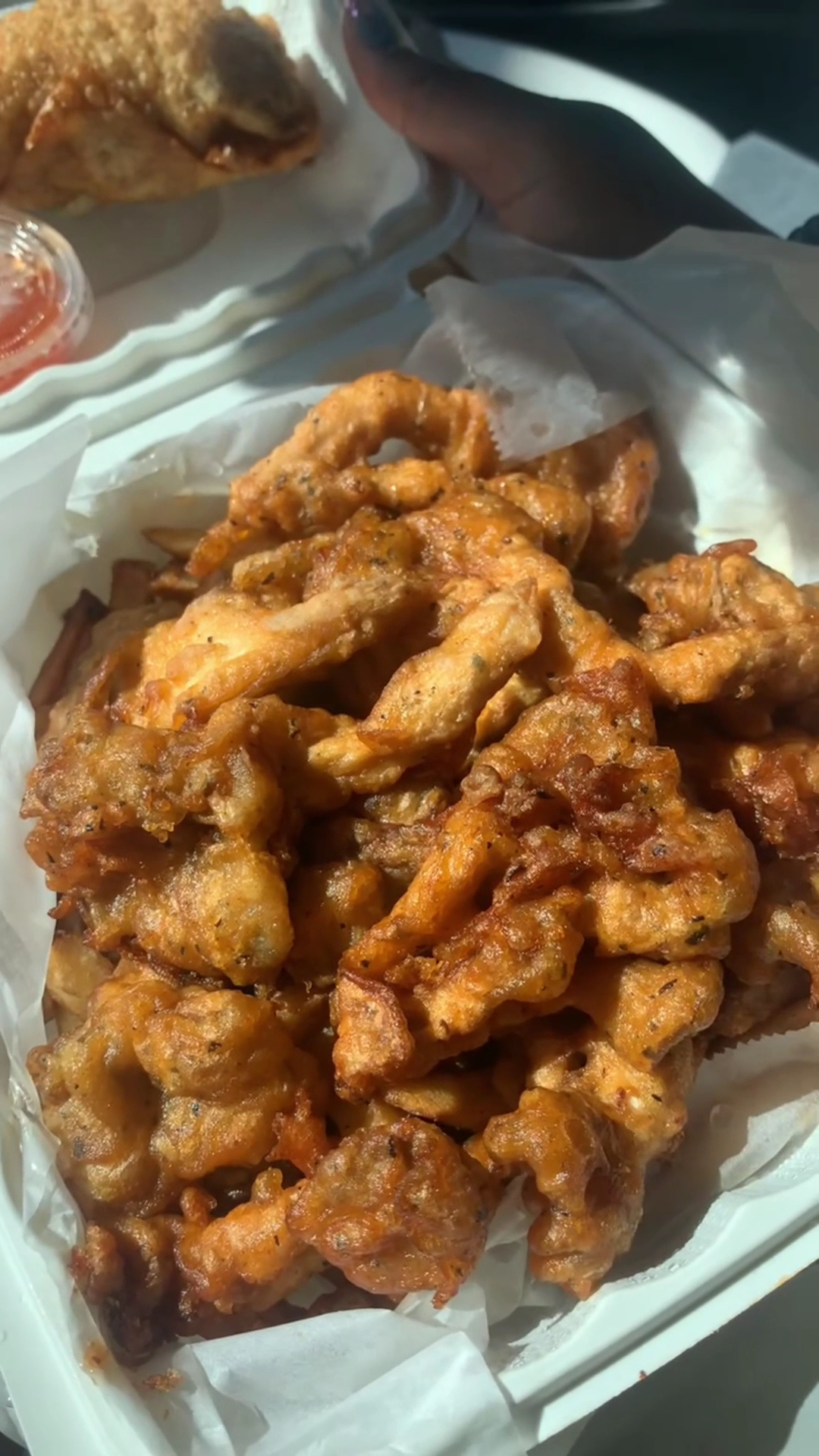 I tried the Cauliflower and Fries. The food was too hot to enjoy for a few minutes and by the time I could eat it, the breading was a bit soggy. I would have liked to also had bigger portions of hot sauce and ketchup.