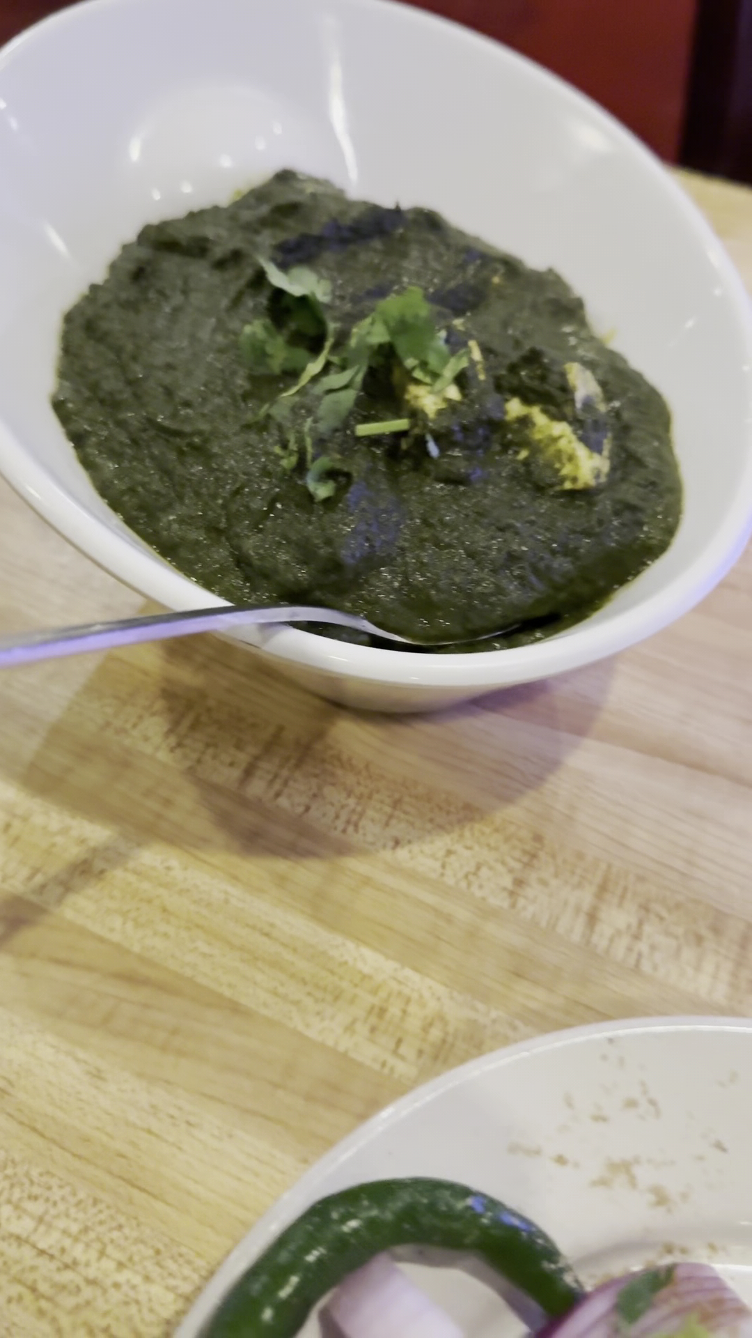 I eat primarily plant based so ordered the dal fry and he said they could make less spicy since it usually comes medium. They succeeded and there was just a small hint of heat which was perfect for me. We planned to share so after they chose tikka masala and a creamy veggie dish, we asked him for another suggestion between two options. He suggested the saag paneer, as providing a better range of colors and flavors.