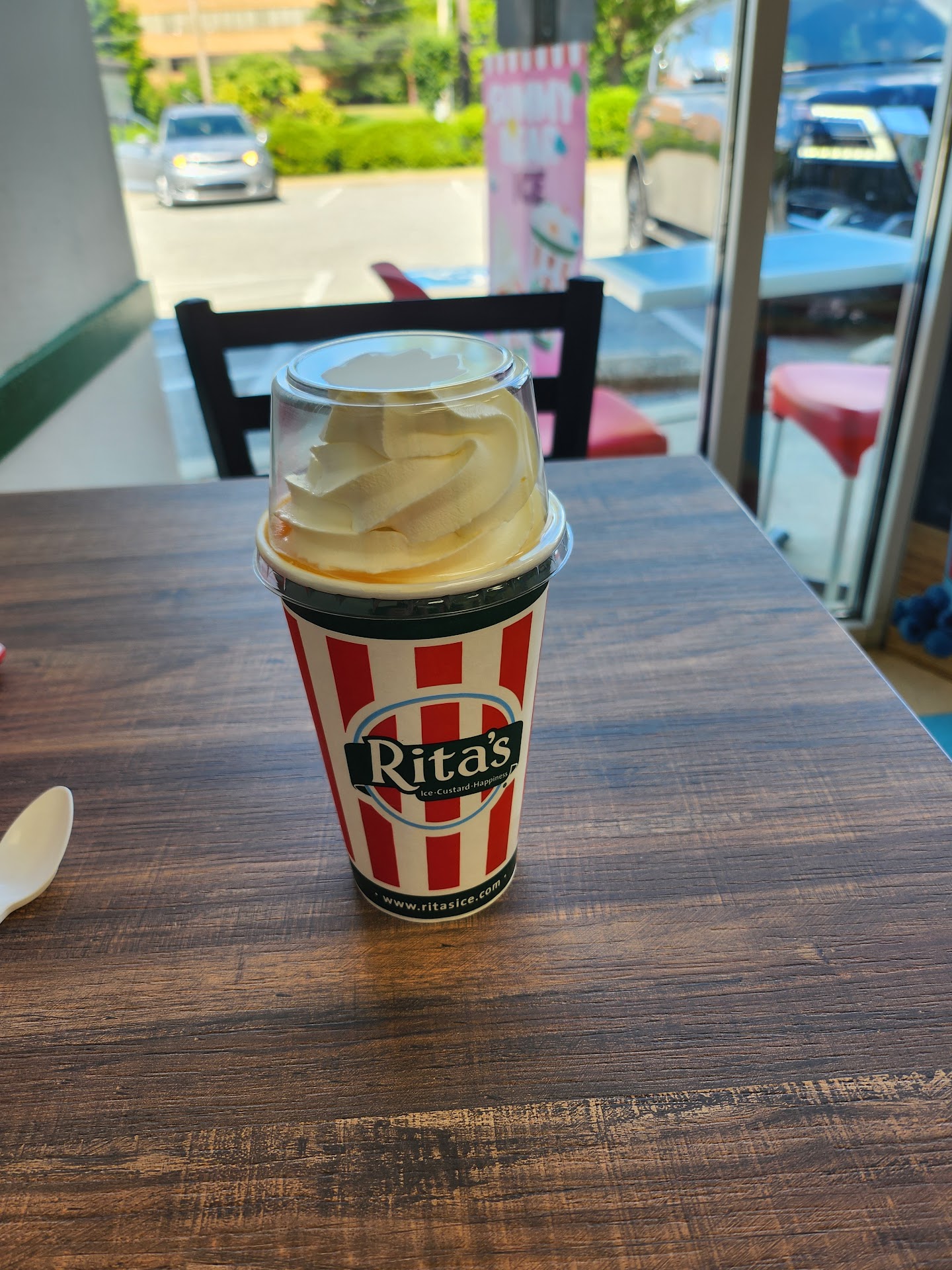 Read moreI was wanting a nice treat to end my day and I was actually eying a different Rita's on the DE side of the state line. However, as I was going down Concord Pike, I happened to catch a glimpse of this particular Rita's. I decided to stop here because it also appeared to have a small inside seating area. Rita's focuses on two items and combinations thereof - Italian ice and soft-serve custard. It's simple but very tasty. I like the soft custard as it's smooth and creamy and light. My only nit-pick is that I wish they had strawberry-flavored custard. Would be interesting to have that paired with their strawberry ice flavors. Their Italian ice is very juicy and tasty and I love the flavor of their mango ice. They have a variety of flavors that rotates as well as seasonal flavors. Gelatis are one of the best ways to experience both as it's layers of both the Italian ice and their custard which blend together nicely (so much so they also offer the two blended together as a drink). This particular location has a small dining area inside with a couple tables and a couple tables outside. Nothing much but if you want to enjoy your treat right there, it's possible. The service I had today was great. The person manning the counter had a great personality and was very personable. If you are wanting a cold treat but maybe not the usual ice cream, hunt down a local Rita's and give...