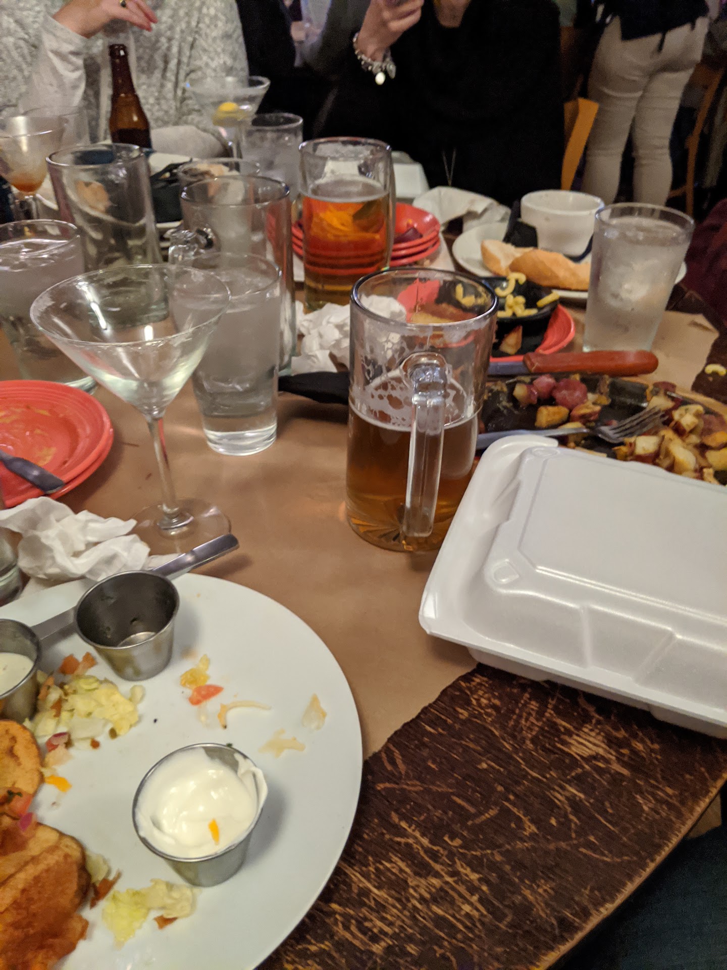 By the time those items arrived, food was cold, someone was still missing a beer and plates were just building up on our table from appetizers. entrees and drinks as our server never bothered to clear our table. He was working the party of 16 with another server that was right in my field of vision. Apparently both he and management decided that table was more important than us as I counted them getting 3 individual rounds of drinks before everyone at our table even got our 2nd. We found a tray and bussed our own table of empty plates and glasses.