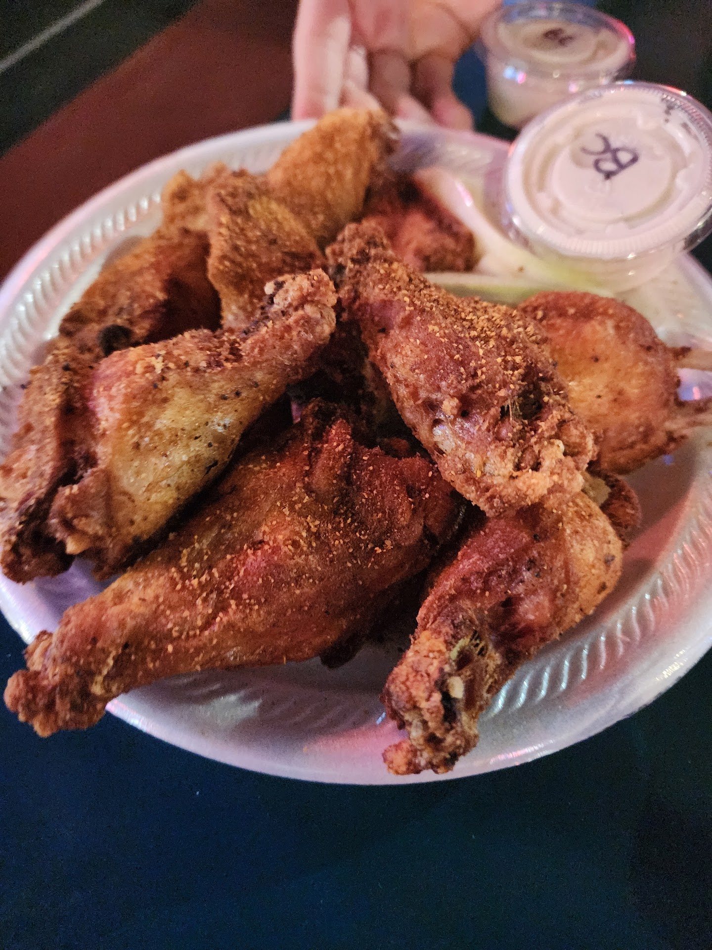 The wings are FROZEN to death and freezer burned, dark bones and dry as leather. The Cajun seasoning was just tasteless.