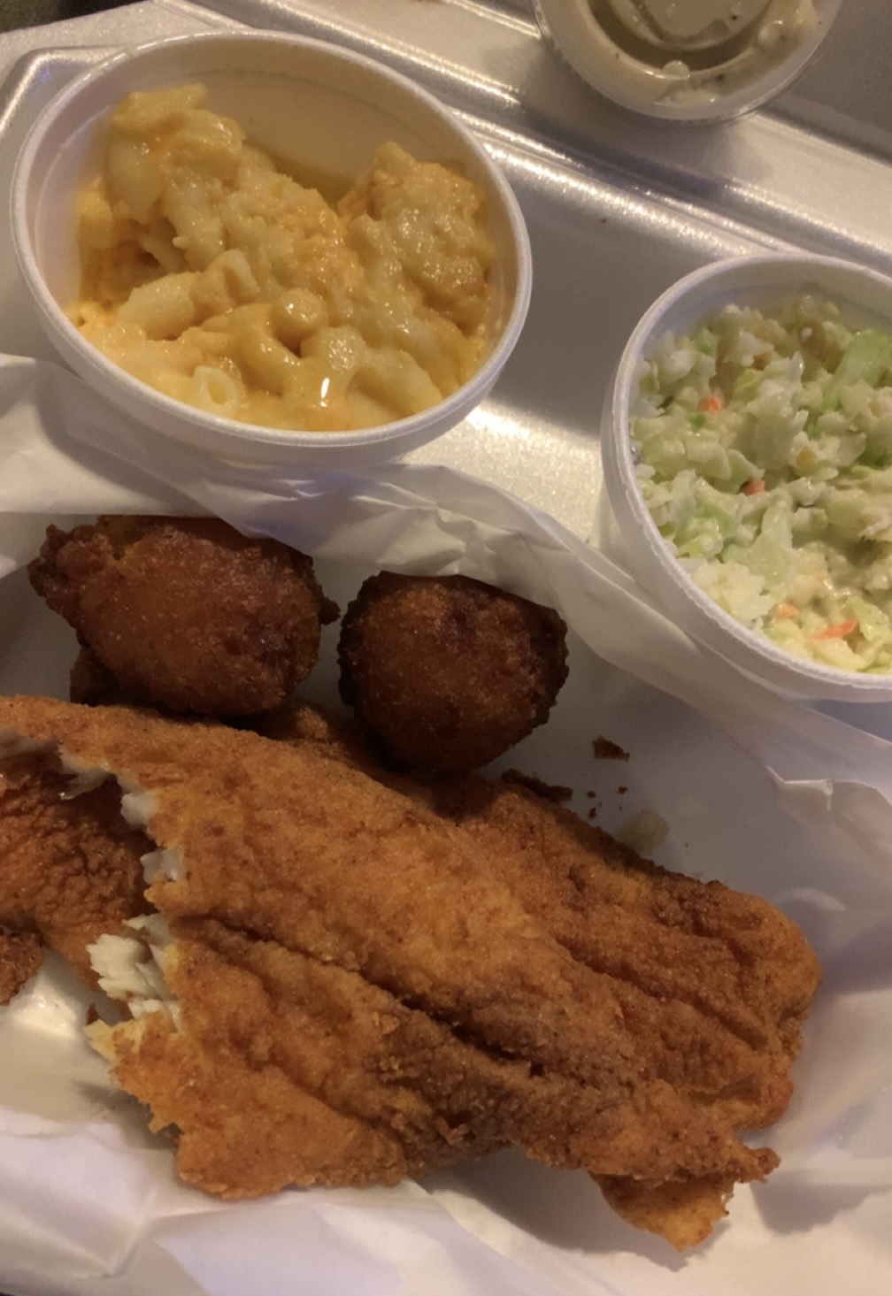 From the moment that I walked in I noticed a calming feel about this restaurant, the staff were busy the customers were served and the aroma of good cooking filled the air. The menu was consistent with the theme of the restaurants name Fish and fixins. They had everything from delicious vegtable sides like collard greens and fried okra, to home made macaroni cheese to Cole slaw this place seems to understand what sides best accompany the main course. The fresh smell of Croaker reminded me of my younger days when on Fridays my mom would fry up several pieces of this delicious fish and the sight of their golden brown Flounder, Talapia and Witing brought back memories of my time as a young cook at the local fish camp. The customer sitting two tables away from me delighted on their golden brown crispy chicken wings and I could tell that with every bite she experienced a little piece of heaven. The restaurant has two large television that were playing perfectly in the background and provided just enough volume to keep the atmosphere complete. The staff worked like a well oiled machine with smiles that signalled that they too enjoyed their provisions of great food friendly smiles and a warm sense of purpose. Stop by and ask for the chicken Philly all the way with fries and I promise that you'll be amazed at the quality and value of this establishment. So I'll wrap up my review with this phrase I had an experience and not...