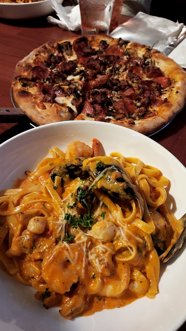 We were a party of 10 we did 2 seperate tickets food was good .my sister in law ordered a plate that she wasn't satisfied with the flavor. my sister in law didn't touch the plate she expressed how it was too sweet. and our waitress cared less nor even asked to exchange the plate .which was only the beginning of the worst part. my sister in law ordered a large, and ,medium pizza to go. the large being a specialty pizza and clearly asked for no olives. as her husband is allergic to olives .the waitress said got it! We waited and paid our bills .coming out to almost $400 dlls we get the pizzas to go our mistake was not checking the large pizza we drive home to find a bunch of olives on the large specilty pizza. we called to tell them .thinking easy fix just make another pizza right ? well they said we never ordered a special pizza which we have record of .then the manager says that ourwaitress repeated our order which was a lie. so the manager says the best he can do is give us a discount on our next pizza order what a petty and pathetic thing to do .soo unprofessional. i will never go there although the rest of our orders were good they lost customers over a pizza with olives that they refused to make right they screwed up our order then argued with us we dont need a discount id be ok with paying full price the fact that they didn't own up to their mistake. And argued with no sorry nor concern nor offer to make it right was enough for us to never dine in how petty...