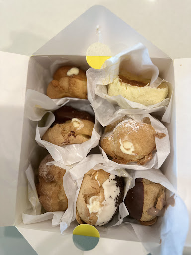 Read moreWe ordered a dozen of these creme puffs to go, 1/2 went to my niece and half came to me. I had two plain powdered sugar with chocolate filling, two Oreo Cookies n’ Cream Shell with chocolate filling, and two Ube Shell with Ube filling. I liked all of the flavors we ordered except the Ube did not taste like Ube to me, just my opinion. And I recommend you eat these right away. Don’t keep linger than a day. They’ll get soggy. And these are not overly sweet.