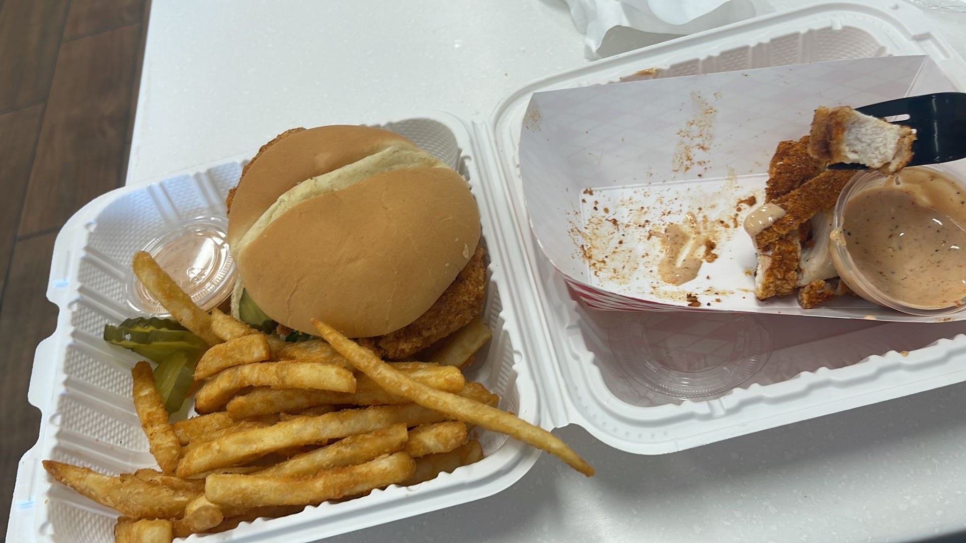 Read moreA friend.and I stop by here today for the first time.I've been wanting to try this place for at least six months I drive by it every day. The restaurant menu was clear simple concise. I ordered the number 4 which is French. Fries layered under macaroni and cheese and then topped with chopped up fried chicken and a drizzle sauce. Holy cow it was phenomenal. My friend got the strip and fries basket. Our meal was $10 each and it was delicious.. service was great. There's really no décor this is a no-frills establishment as far as ambience but I went for the food I will go back for the food. This is a new favorite. I am very picky and my friend who is with me is very picky and the tenders were juicy and flavourful. I will be back on a regular basis. You must try this.. Im trying to add pictures but can't...