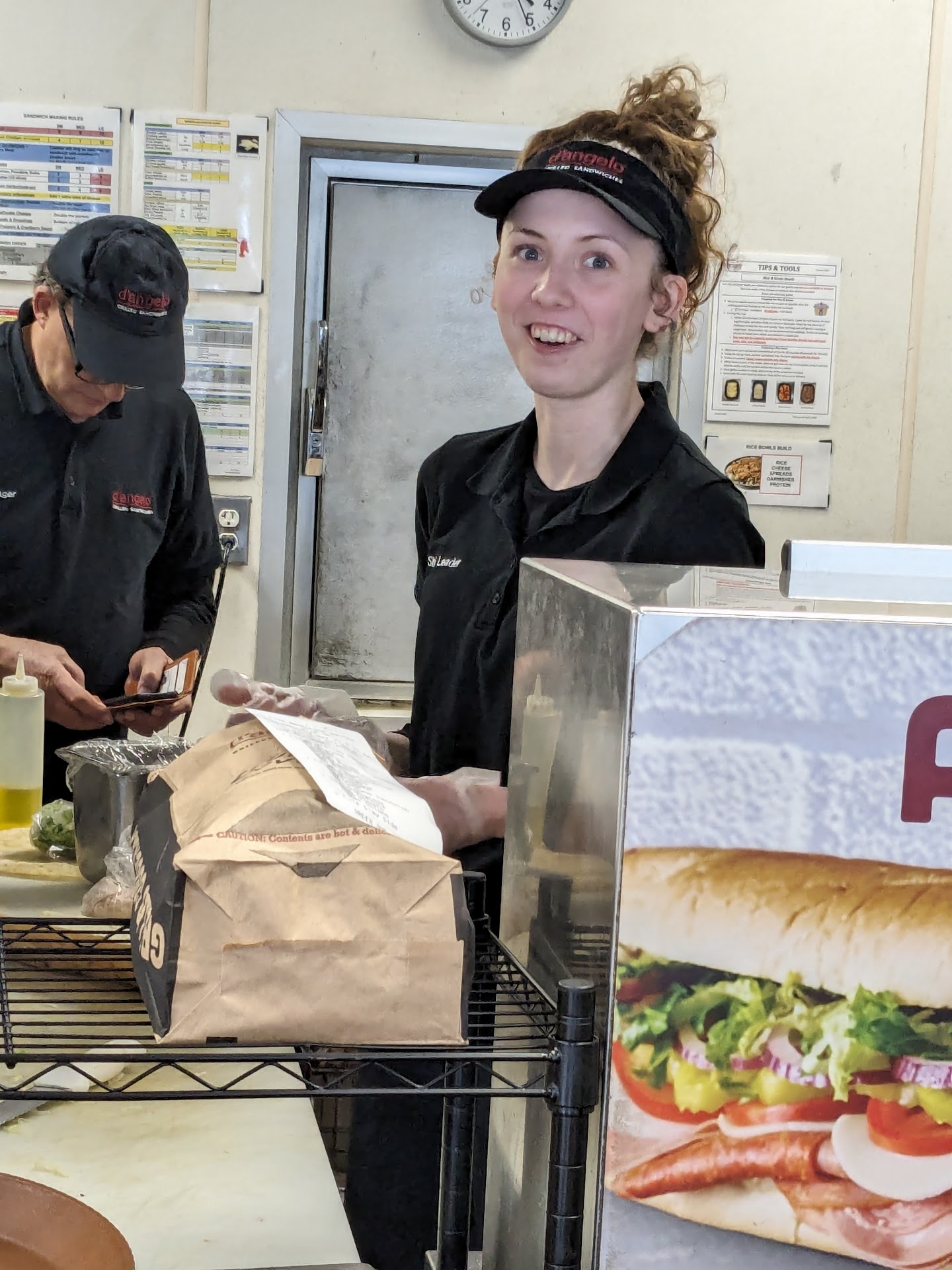 My wife placed an order over the phone for 3 subs that came to a $27.99 with no issues. When we arrived to pick up our food another customer had arrived to pick up their order. The other customer took said order to their vehicle and started to drive away with this order when the man from D Angelo' s came running out to stop them only to take that order bring it inside and handed it to my wife without asking to remake it or offer a discount. Every food business I know of has a company policy to throw out and remake any food handled by anyone other than employee's in any way, nevermind exiting the building and entering a non employer environment. Quite frankly said customer seemed to have questionable hygiene habits from my point of view. None the less, as I was not part of the transaction, I must resort to a review in order to relay my disgust. And if this is any indication of this company's sanitary concerns, I question where else or how far it extends. Tried them again, sat on hold on the phone for 15 minutes, while on hold I decided to drive there thinking they would answer before I got there. Wow, was I wrong. Took 20 minutes to get there, still on hold, only to pull up and see 1 person standing around and the other doing things. When I got inside, I was greeted with "be right with you". Meanwhile the 1 person kept working and the other gazed at an empty grill. After waiting for over 5 minutes, I was asked how I could be helped as I was leaving. Really terrible customer service. I will most certainly not be trying this again, and will be certain to share my experience with every...