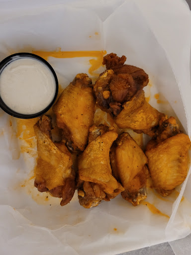 Upon opening the containers, we were met with a pretty sad sight... 10 of the saddest, tiniest wings I've ever seen. I saw a different review expressing similar sentiments about the wings, and the owner replied the wings are jumbo. If these are jumbo, I'd hate to get an order with regular wings... it'd be nothing but bone and gristle. I assumed the "1LB" referenced on the menu was pre-cooked weight, which was all fine and good, but felt the "1LB" claim was dubious.