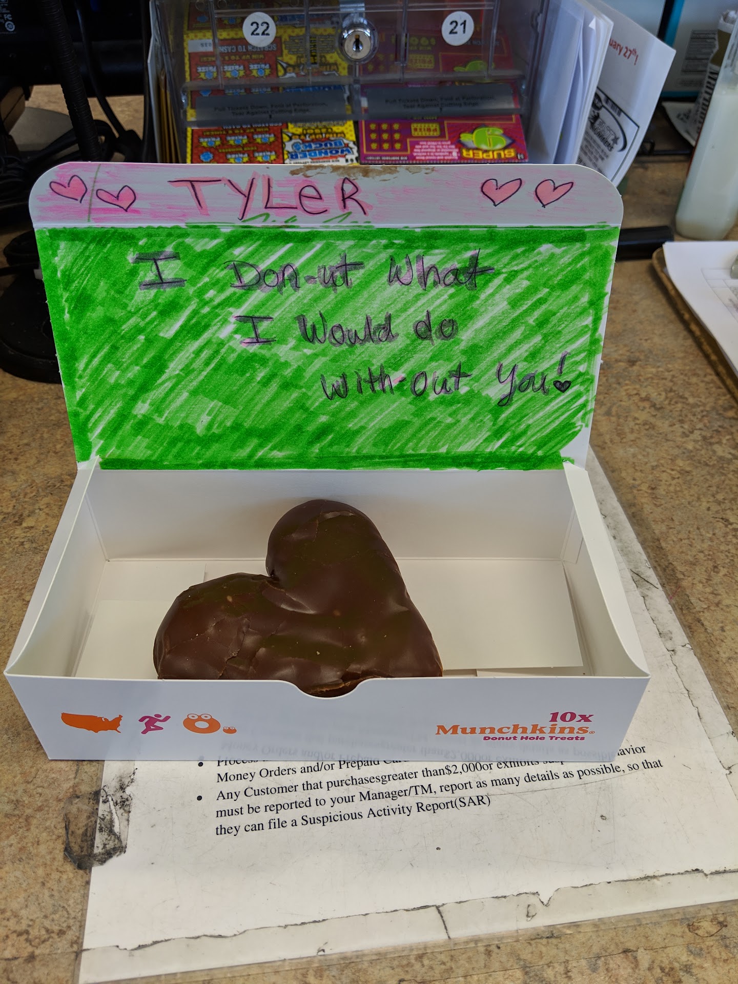 Read moreHave yet to have a Great Dunkin Donut experience at this location. Won't talk about before and reason why I go to the other one up the street. But recently had a last min craving for something after I passed the one I should go to. Well two days ago I said I'll get a sandwich cause there $2.99 well I ordered that and a muffin for later and went to the drive up to pay, handed my card got it back and food and just never looked at receipt. I then noticed as I was already on highway that I over payed and didn't get the discount that was ADVERTISED @at Driveup window and found out I paid full price. Ok whatever, my fault. So I just so happen to be driving again and my Son wanted some Hashbrowns and I had already passed the one I would go to. So I stopped at this location again. Ordered three Hashbrowns and a sandwich. This time I had gotten the receipt and had a chance to look. I noticed that there charging full price AGAIN AFTER 12!! Now this time it was only $.50 but just think they could be really screwing over a lot of people who aren't paying attention!! I now will never have anything great to say about this place. Oh and there always out of Whip Cream too.... Just...