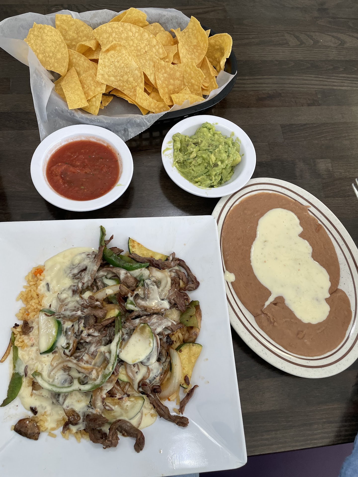 We totally enjoyed our experience here. I was leary at first, but we said let's give it a try. It was excellent! I had the chicken, cheese & rice (ACP), my wife had the steak, cheese & rice. Both very good and plenty enough to take home for lunch the next day. The nachos & queso were very good. I also got a crispy beef taco on the side, just to try their ground beef. It was very good, will get more than one next time. They have an extensive menu. We'll be going back to try some different items. Can't go wrong here. The wait staff were friendly and excellent. Plus they give...