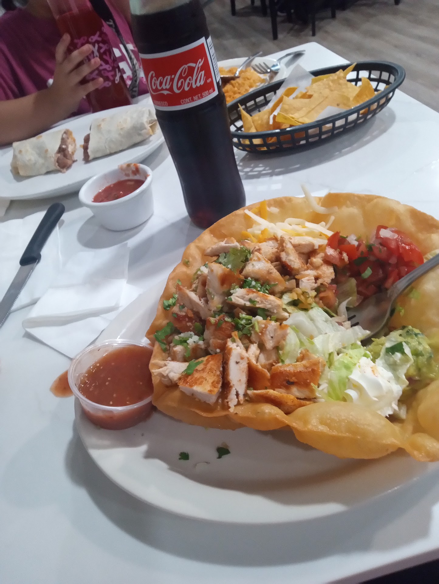 10/15/23 I wanted a taco salad because i was really craving a fried tortilla. It was on the menu and explained what was in it, and I thought, why not give this place a try. Ordered the taco salad, birria tacos, and chicken tacos. I was a little surprised by the taco salad. It was flat. I was used to a larger size taco bowl like El Pollo Loco or La Pinata. The chicken was crunchy which was a surprise to me. In my mind the chicken was suppose to be shredded. The rice and beams were good. The salsa that came with it was spicy, but not overly spicy. The chicken tacos had the same meat at the salad. Although, I must say that they warmed the corn tortilla on the grill maybe was a nice touch. Birria was good. Big pieces of beef inside. Consume was ok. Would I come back here again? Maybe. I did notice they had a TV inside for the customers to watch a soccer game. So if you're looking for some Mexican food and access to a soccer game this is your place. They have outdoor...