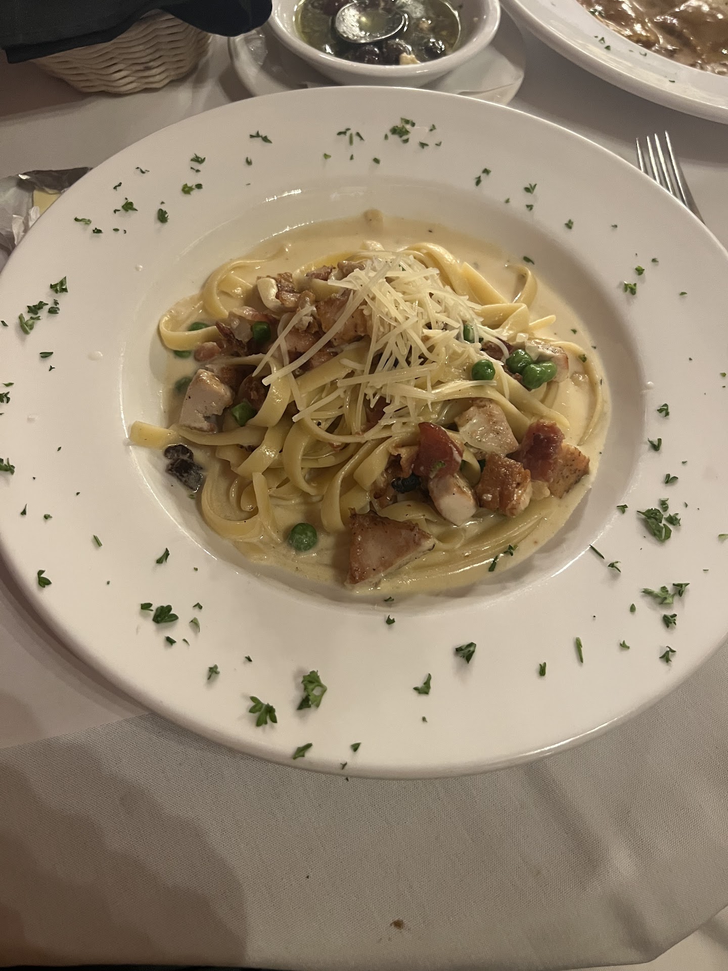 Oh my Google reviewers, you completely misled me. Based on your score of 4.6 stars, I decided to give this place a shot before a concert at Concord Pavilion. And I have to say, I donāt get it. We walked in and there was one table seated and two people at the bar. All patio tables and other tables were empty. The host took us to the furthest table at the back of the restaurant, tucked behind a wall. Iām assuming this was because we didnāt have a reservation - not quite sure why we had to be hidden in the back. The host had terrible body odor, you can imagine my disappointment when he turned out to be our server as well and we had to endure bad b.o. every time he came by. The drinks and food were very reasonably priced, I love a good neighborhood restaurant with realistic price points. Menu has a good variety of cocktails, appetizers, and pasta options. We started with the olive pesto dip, which is their most popular appetizer. Itās described as mediterranean mixed olives with candied walnuts, pesto, honey balsamic and olive oil. Ours had no walnuts, minimal balsamic, and what seemed like feta cheese. Not sure. But it was just kind of a bland oily dip for the stale bread. For our entrees we ordered the ravioli and the carbonara. My ravioli was okay, the sauce was a weird brown color though which could be a little unappetizing visually. My spouse had the carbonara and it was bland. We had to ask for salt and pepper to try and season it. To make everything a little worse, the fresh flowers at our table had quite a bit of fruit flys which kept interrupting our meal. Once the food was delivered, nobody really came back to check on us. There wasnāt an opportunity to order more drinks, we were offered dessert by a different employee later in the visit, but once the restaurant started to fill up, we were kinda forgotten about in the back. I donāt know guys, I think you got...