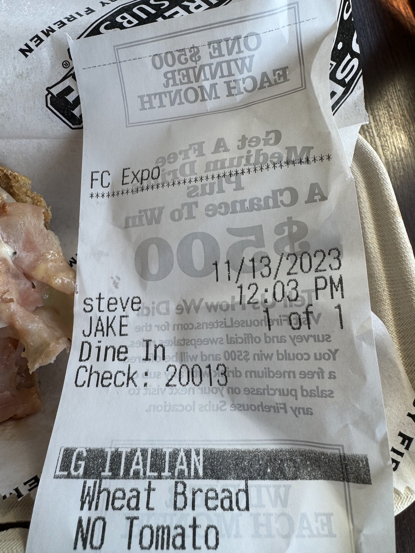 Read moreI LOVE Firehouse Subs. I order them at least once a week, but this experience left me a little irritated to say the least . No matter the reason that I was as late as I was getting to the store, I got there before closing at 9 - 8:54 pm to be exact on 10/02/18. My order was placed and completed by Hunter at 8:57:57pm per the receipt for $36.45 at which time this smart aleck proceeded to inform me that "next time I want to place an order, to keep in mind that they do close at 9:00 pm" ~ ah, YES, I know that, I was there before 9 and placed my order. The fact is that I'm sure that they already had the store ready to "lock up", cleaned and all at 9:00 pm which is not the idea of being open until 9. Not only did my order get made incorrectly, it was the most sloppy bunch of sandwiches we had ever gotten. That is pretty sorry in my opinion. If these are the rude type of people you all hire to work at your store, then you can keep your sandwiches and I'll go elsewhere. My money is too hard earned to be disrespected because I walked into the door before "closing". I have worked in fast food myself when I was younger and it didn't matter if there were 50 people in the place, you locked the door at closing time and you served them all until the last customer with at dang smile on your face. I didn't even so much as get a "thank you" when he tossed my bag of food up on the counter at 9:06 pm. Sorry to have...