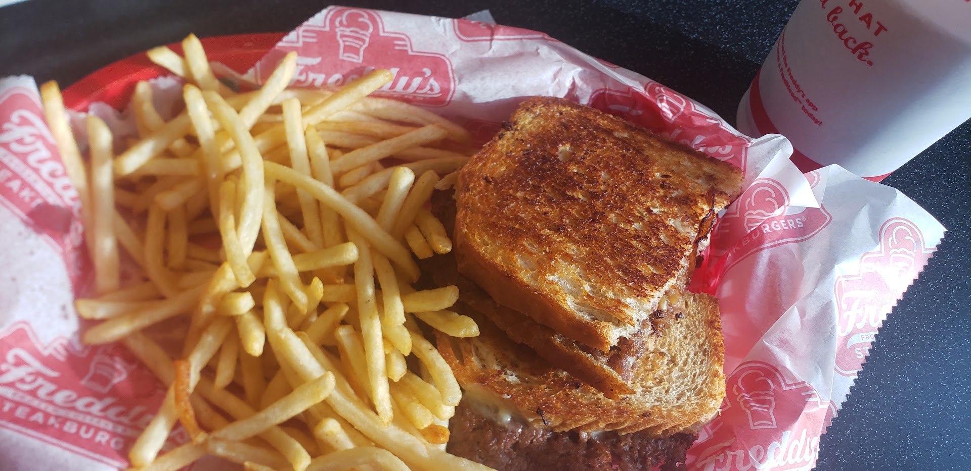 Read moreThis Freddys location is very new. As a 1st. timer & last timer, I found the Staff was nice when they took drive thru order, however I'm not sure where the order went wrong after that... I ordered a $5- ($5.59$)Veggie Burger, which I was stoked to see on the menu. & thought for $5 bucks it's got to be good...The burger is obviously sent prepattied & frozen, and was 3/8ths of on inch thick, heated to where it felt luke warm, & was bun size. The bun, was Falling apart from being soaking wet. From I quess, not shaking the ketchup bottle before they added it to the bun. This is not in anyway an exaggerated review. And if all this wasn't bad enough, the very reason I began this review... The bun literally dripping wet from something clearlike....it was also almost as cold as ice, like water out of the fridge cold. Thank God I did not try eating this in my car (as it was night) and the hairs that were mixed into the burger itself, would have had me furious. And sickly. I also ordered a "kids" cheeseburger combo, for my 4 yr old. The combo was decent, if you like salty patties. I took a bite and that's what I tasted over the meat. Not sure again where they went wrong with that...was it on the factorys end over seasoning the product, or the grill guy/gal? it was just too much, however my...
