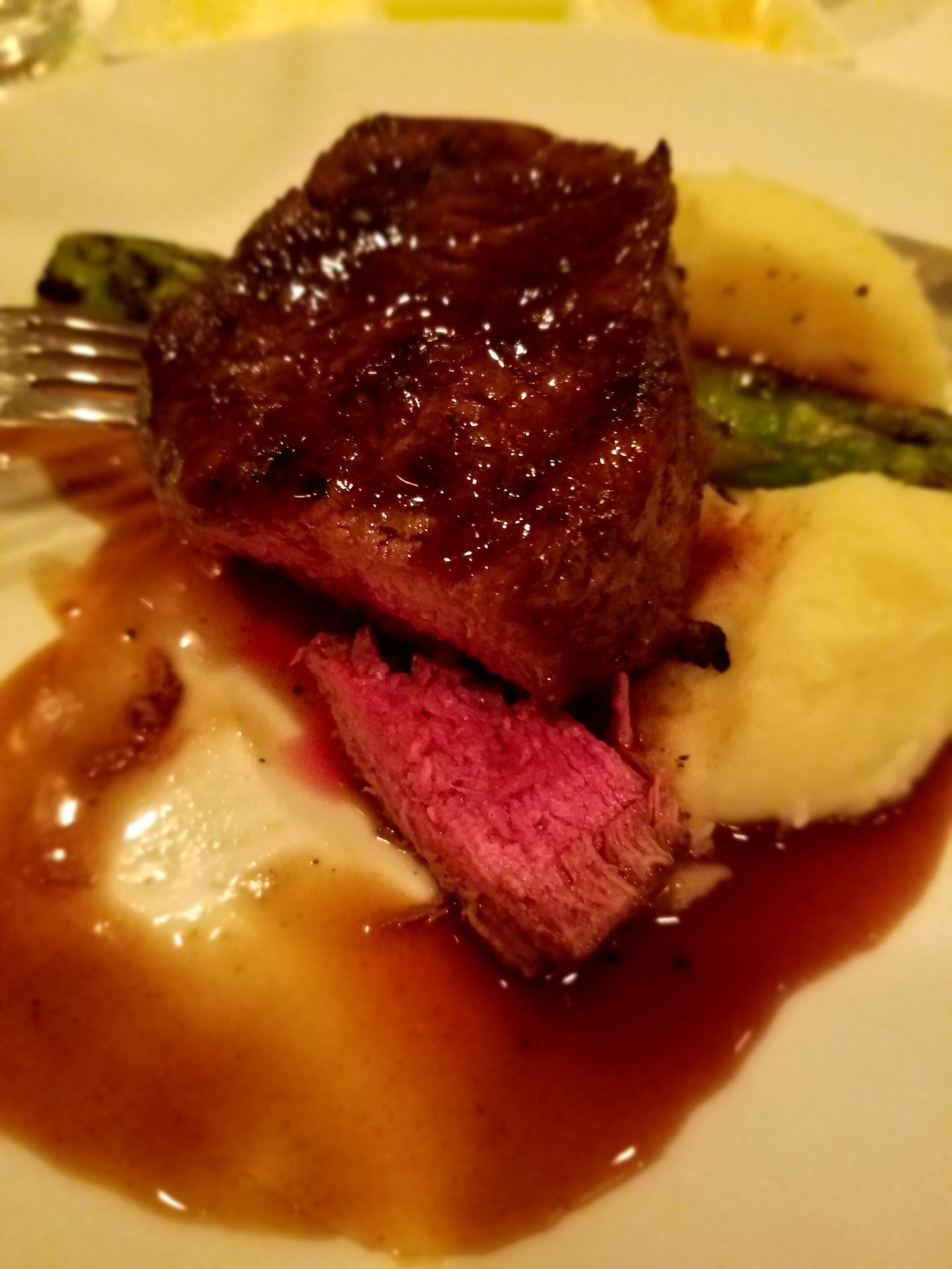 Below is my first review. First visit here. It was Valentine's Day, but we had reservations, so we were seated promptly. Not sure if they were short staff, but our wait between ordering and receiving anything was very slow. Most items were great. I ordered the 8oz filet, and my husband ordered the duck. He said mine was the better choice, and I would agree. The oyster selection was very good as well. The dessert champagne cake was moist, but nothing spectacular. The 2012 malbec was just opened, I was told. But the temperature was too warm. But the French Martini was very well made. Overall a great expierience, but over priced for the experience. My suggestion try this place when it is not a set...