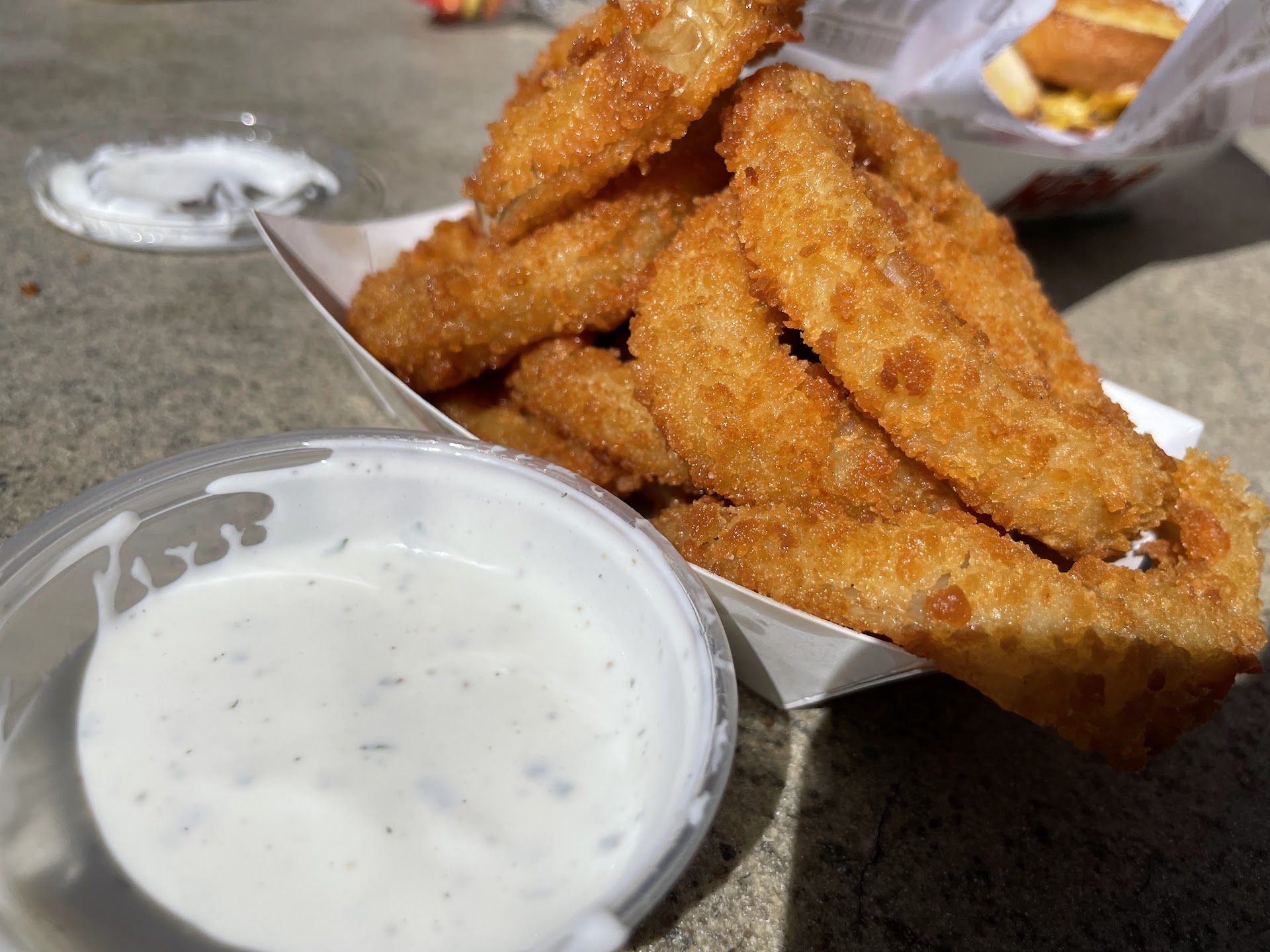 First some complaints. The medium drink is the size of a small at other fast food places. Got 4 onion rings in a half order. Burger was small (seemed like less than a quarter pounder). Some of the lettuce was browned/slimy.