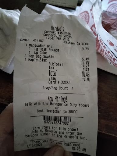 Ā Ā Ā Read moreThe employees at this Hardee's I guess when the cats away the rats will play they sit down take orders from the seats for the customers they have no smiles on their faces it's kind of like they wish you weren't there they're not happy they're grumpy they don't offer you a napkin nor do they offer you a straw unless they have to I don't know about the drive-thru I don't know if it's any different I find the employees lazy The food is good but they could use a little more respect when it comes to handing you napkins straws and be a more appreciative that you showed up with a smile on their face and to sit down and take a to-go order in the dining room that wasn't what I was expecting where is the manager of the store or was that the manager sitting down taking an order from in the dining room a seat for a customer if you're this lazy you should stay home I'm sure she could have found some things to do besides sit down this place could use a manager there to straighten some things out and get it where it is in tip top shape for people to want to come in because right now that's...