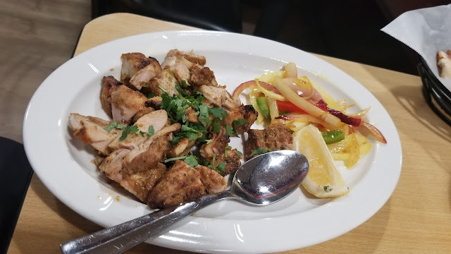 Himalayan food is always interesting to me. It is a combination of culture, cuisine and history. When I opened the menu, I see the typical signature items: momos, nan bread and milk tea. What I did not see is a yak-based dish. I am sure it is darn difficult to get any yak in California so I am totally fine with chicken momos instead. It came out tasty and my son loves it. You could tell this place is family run. The lady who took our order, has her son doing homework at a side table. The men in the kitchen were probably family too and they were keen to check in with us to make sure the food is satisfactory. We ordered the garlic naan bread, chicken momos and I was in the mood for lamb vindaloo. All these 3 dishes were great. The vindaloo was pretty spicy and the sauce was spicy and rich. My husband ordered a dish from the specials, which was essentially a grilled steak with sauteed onion and green pepper. To be honest, I am no expert in Himalayan cuisine so i don't know if this is a traditional dish or some newer iteration. The beef was a bit too dry for us and the seasoning was a little on the light end.