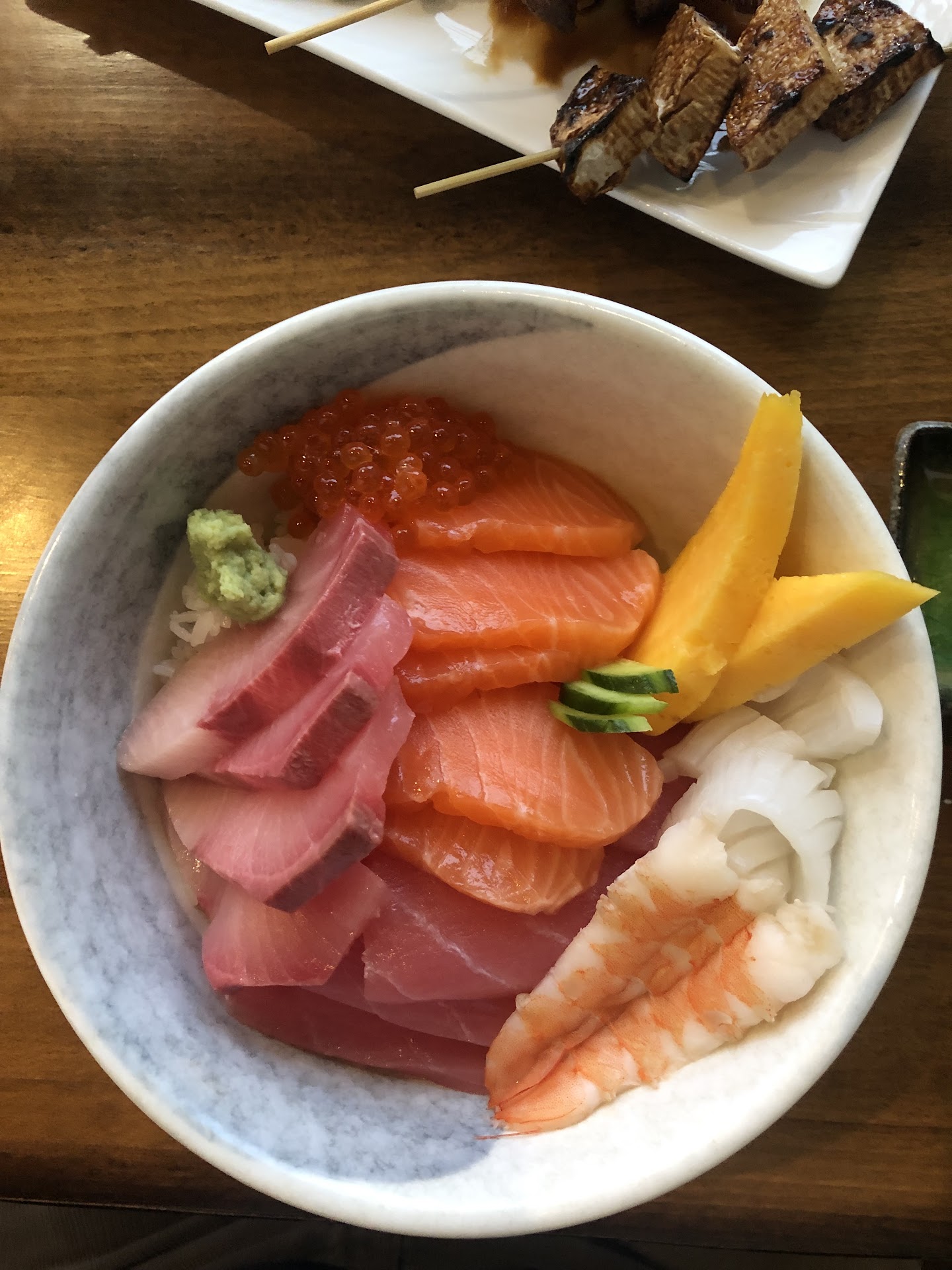 The Chirashi Don was delicious: expertly prepared sashimi over perfectly seasoned rice.