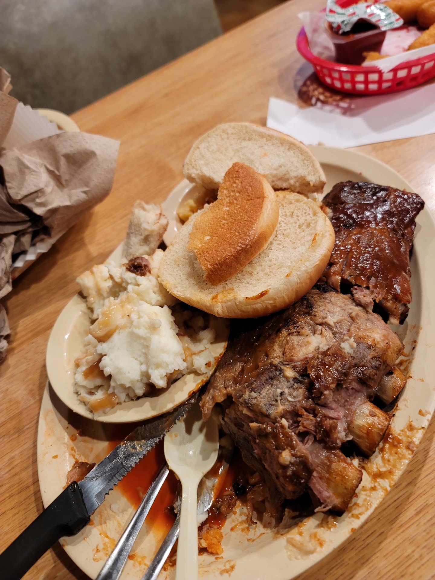 Read moreI was starving after a long day and as usual I was craving ribs and decided to try a different restaurant. I seen the reviews and reviewed the comments what not, it seemed like a good place so I decided to try it out, the service was good. But the food was something completely different, the ribs looked like they just slapped barbecue sauce on it, no taste nor crisp or anything! Mac and cheese tasted and looked like it was sitting out for a good minute. I got a roll with my dish, and next thing you know I received hamburger buns. The sweet tea was mid as well, the cup tasted like it wasn't washed well. As I was leaving I heard the waitress who was attending me say "they didn't eat our food" loud enough for everyone to hear. Like if I didn't pay for it. It wasn't worth paying for. Next time if she'd like she can pay for my meal since it so what bothered her. The meat also left a horrible smell in my mouth, so I do not recommend this...