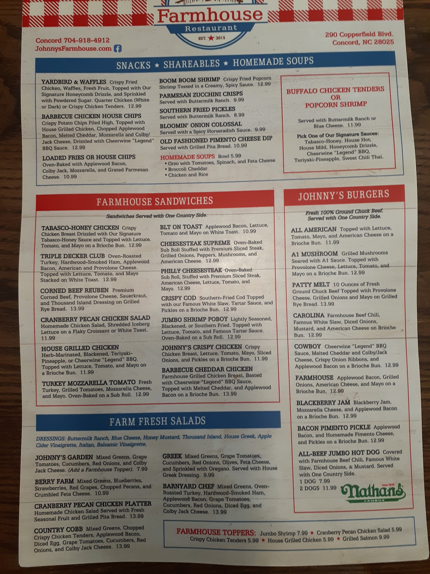 Read moreMy family and I visited Johnny's Farmhouse, at the recommendation of a friend, and we were very underwhelmed. We are not picky people - I only post a review if the experience is very good or very bad. First impression - love the theme and the decorations on the wall around the restaurant. The waitstaff were very nice, the restaurant looked clean and we were seated quickly. Our drinks were delivered promptly... but that's where the good part of this review ends. We arrived at the restaurant a little after the peak dinner rush, so it's understood that they were busy. I don't know exactly how long it was from the time we placed our order until the food was delivered, but my son was on his third glass of Cheerwine and there were families that came in 15-20 minutes after we did who received their order and were almost done eating before our order came out. It was also FREEZING in the restaurant, to the point that my kids asked if there were any blankets in the car and wanted to leave because they were so cold and so hungry. When the order finally came out... my wife and I had ordered the same thing, fried catfish, and hers looked completely different from mine. I'm not sure if I maybe received cod or ?? but it definitely tasted like some sort of bland frozen fish. My wife also received less fish than I did and 10 minutes into the meal, a waitress randomly showed up and asked if anyone was missing a piece of fish (?!). I ordered fried squash as a side and really did not enjoy whatever breading was used, but I'll chalk that up to a personal preference. My son ordered the Philly Cheesesteak sandwich, which was comically small... on bread that was maybe a little larger than a hot dog bun. I should have taken a picture of the sandwich and the look of disappointment on my son's face, but we were so hungry and cold at that point that I didn't take the time. Overall, I give Johnny's two stars for a clean restaurant and friendly waitstaff, but the long wait time for food to be delivered and the inconsistent quality and portions of food means we will not be back. There are too many other good places to...