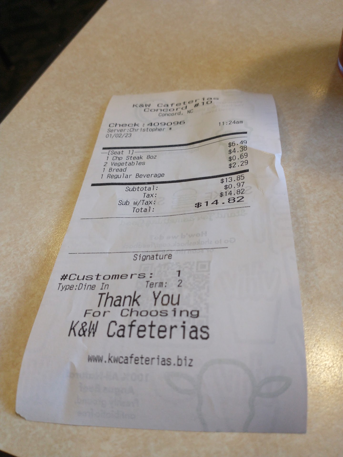 On Saturday 09-02-2023 at approximately noon, I decided to visit K&W (Concord) for lunch. Years ago I frequented K&W for meals, but had not visited in a long time. I frankly had heard that K&W had become quite expensive. I had not heard about the decline in K&W food quality unfortunately until after my Saturday meal and anxiously viewed current K&Wâs reviews.