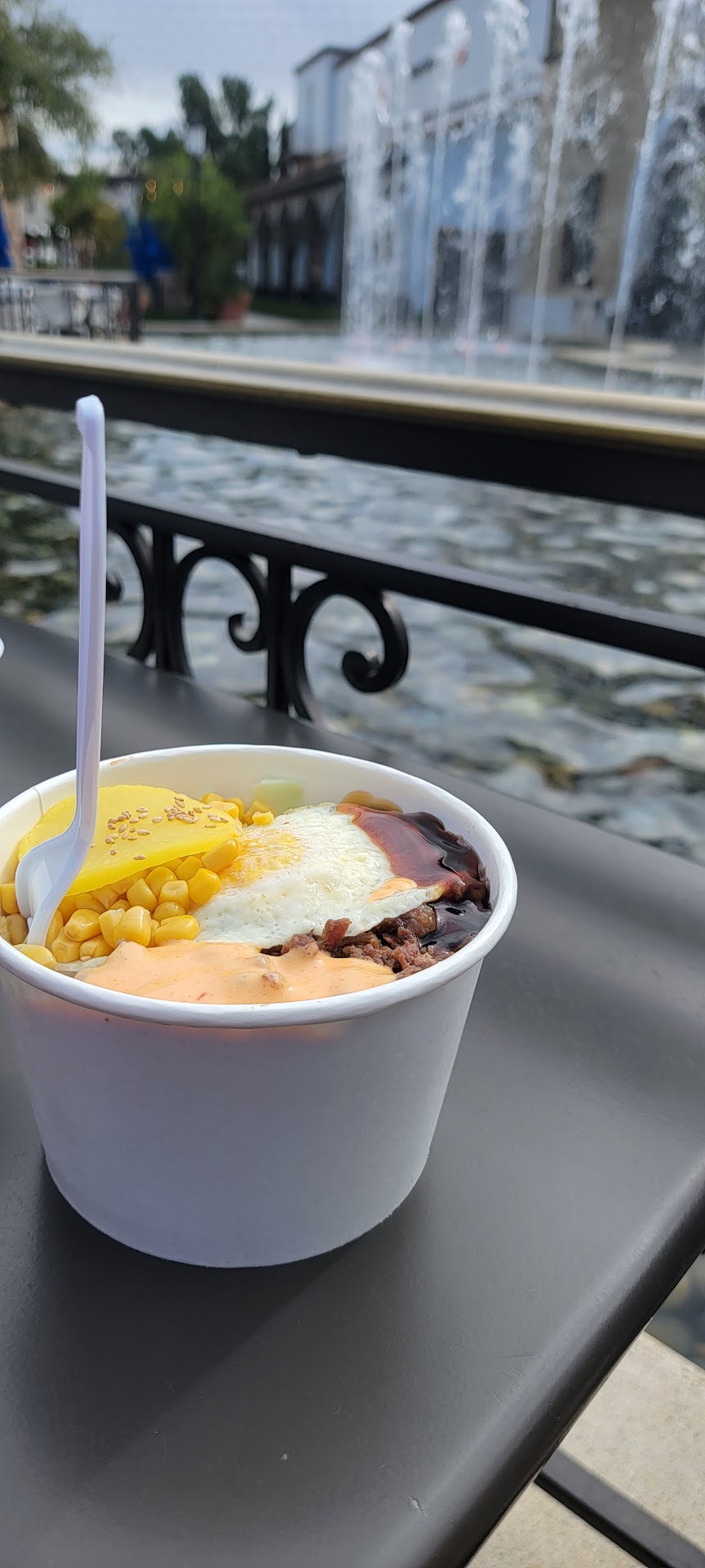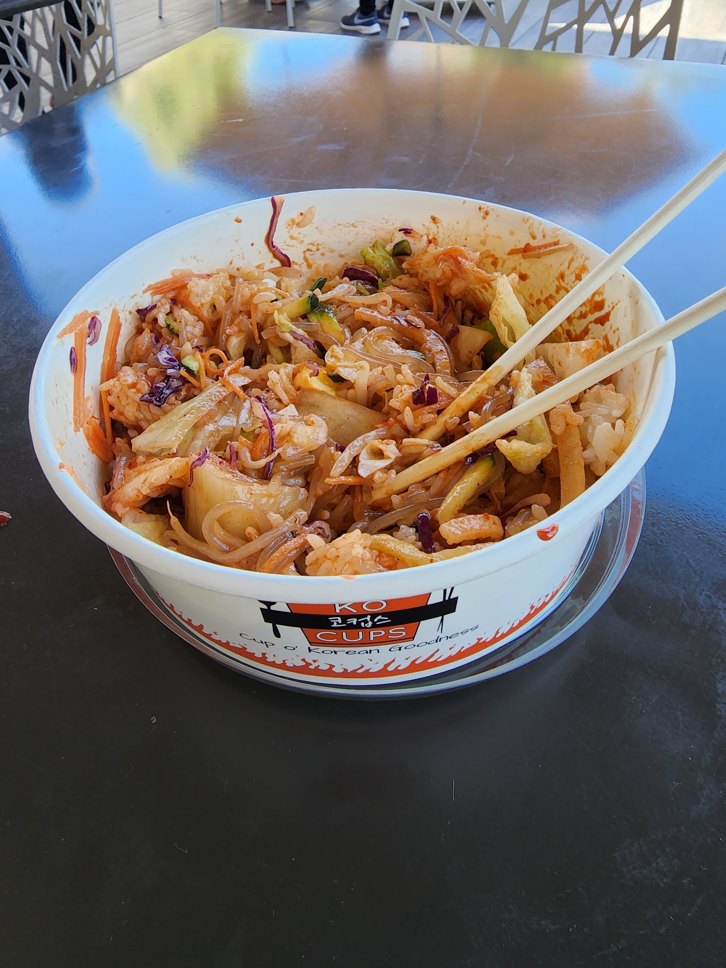 Read moreTried the veggie Bibimbap with kimchi, japchae noodles added, and gochujang sauce and it was soooo good!! The egg was a tad overcooked I think but still tasty. Next time I will definitely try the spicy pork as that's usually my favorite, was just feeling like veggies today. Service was great, the girl instantly asked if I had been there before and proceeded to reccomend popular items and her own favorite (love that! I hate it when places say "everything is good" because that doesnt help me decide lol) even showing me where to grab sauces for my bowl. Love this spot, I will definitely be back! Its true theres no indoor seating but personally I love all of the ample outdoor seating, and there's plenty of shade...