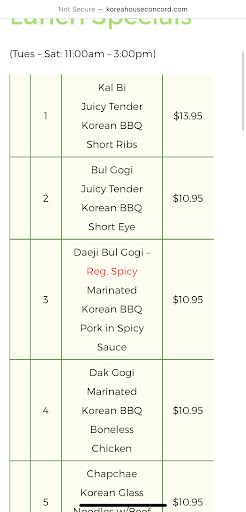 Read moreWe went to the restaurant on Tuesday, June 20, 2023. We ordered bulgogi, broiled mackerel, and spicy chicken. The table next to us had ordered just before we had. They brought out the man's regular teriyaki chicken and placed it in front of him. We overheard him complaining that he had ordered the spicy chicken. They took his chicken back and within a minute brought out an order of spicy chicken for him. They then brought us our bulgogi and mackerel, but our teenage son's order of spicy chicken did not come out with our order. After a couple of minutes, an order of teriyaki chicken was placed in front of him. I reminded the waitress that he had ordered spicy chicken. Less than five minutes later, she returns with spicy chicken. The order looked fine, but my son said the chicken was very dry and hard. After having received what appeared to be the other table's reheated teriyaki chicken and returning it, I am guessing that they took the chicken back, rinsed it off, recoated it in spicy sauce and reheated the chicken a third time. The bulgogi and mackerel were fine, but we already were feeling suspicious about the quality of the restaurant. We will not...