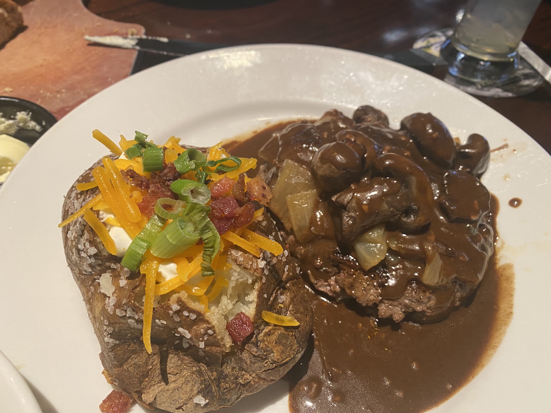 Thankfully, the service redeemed the experience. The waitstaff was outstandingâfriendly, attentive, and genuinely invested in making our meal enjoyable. Our food arrived swiftly, too. The chicken tenders were exceptional, perfectly crispy with juicy, well-seasoned meat that stole the show. The chop steak was just okay, not quite worth its cost. The complimentary bread was decent but couldnât compare to Texas Roadhouseâs iconic rolls and butter.