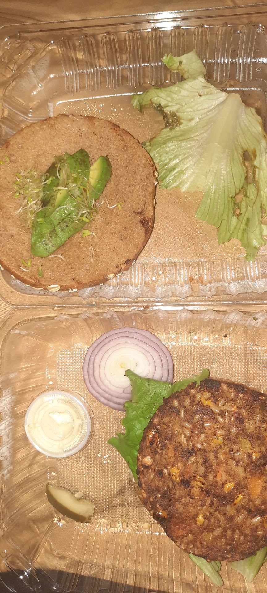 It didn't even feel like a unified, coherent sandwich. I got a piece of bread, a patty with some cheese melted on to it (which suggests it was hot at some point), and a pile of warm vegetables off to the side. Nothing to make it feel like this is a single thing that all works together. No mayonnaise, no mustard, no house sauce, just a bunch of stuff thrown in a cheap plastic box.