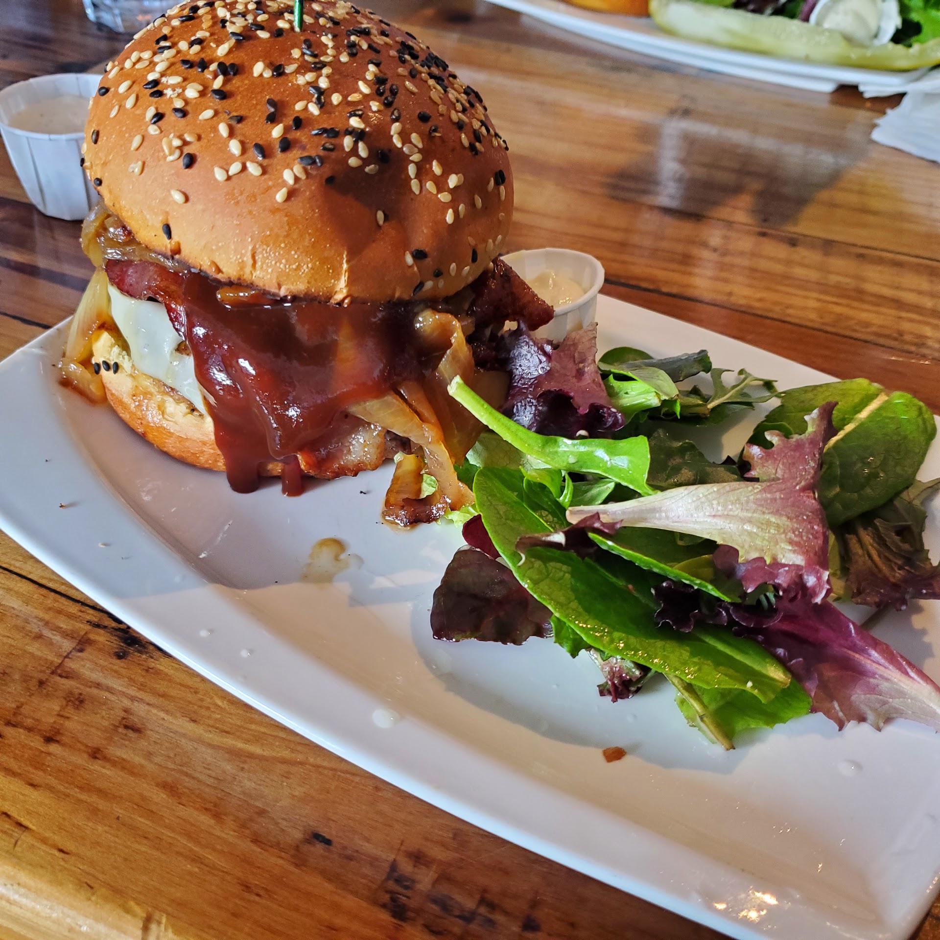 I want to start by saying the food was very great, amazing bbq burger, and bacon burger and please try their chipotle aoli with sweet potato fries. My fave! Now let me explain my time here, while I had my 8 month old son with me too.