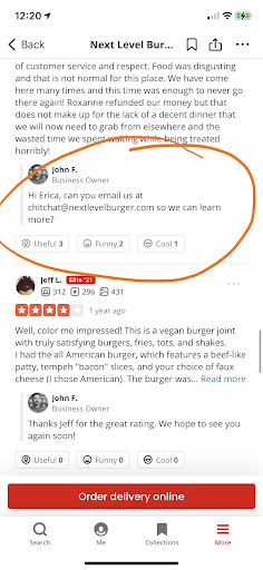Original review: The WORST customer service. We paid $40+ for our meals at 7:26 pm and were told that our meal would be brought out to us outside. It's now 8:00 pm and the food still hasn't come out. Several people came in and out with food so I finally go inside and Riley asks my name and then grabs a bag that's just been sitting there getting cold. She seemed annoyed like I was bothering her. As soon as I walk out she locks the door and turns the light off. We open the bag and my order was missing the cheese and all the food was COLD and soggy and the shake was melted. I knock on the now locked door and Riley comes over with attitude and I tell her that my burger was missing the cheese and she said "you didn't order it with cheese." Ummm excuse me?!! How would she know what I ordered when she wasn't the one that took our order. I told her I FOR SURE ordered it with cheese and she said "Well where's your receipt?" How dare she treat me like this and then tell me I'm wrong instead of just apologizing for THEIR mistake!! Then Roxanne came over and she actually took responsibility and said that she did in fact tell us that they would bring out our order and she didn't know why it wasn't brought out to us. She also said that she definitely remembers me ordering the cheese and at that point Riley was giving us dirty looks. Roxanne went to get some cheese and Riley literally kept giving us dirty looks multiple times and my family was so uncomfortable because of this! How dare she give us dirty looks after being so rude. I am appalled by her lack of customer service and respect. Food was disgusting and that is not normal for this place. We have come here many times and this time was enough to never go there again! Roxanne refunded our money but that does not make up for the lack of a decent dinner that we will now need to grab from elsewhere and the wasted time we spent waiting while being...