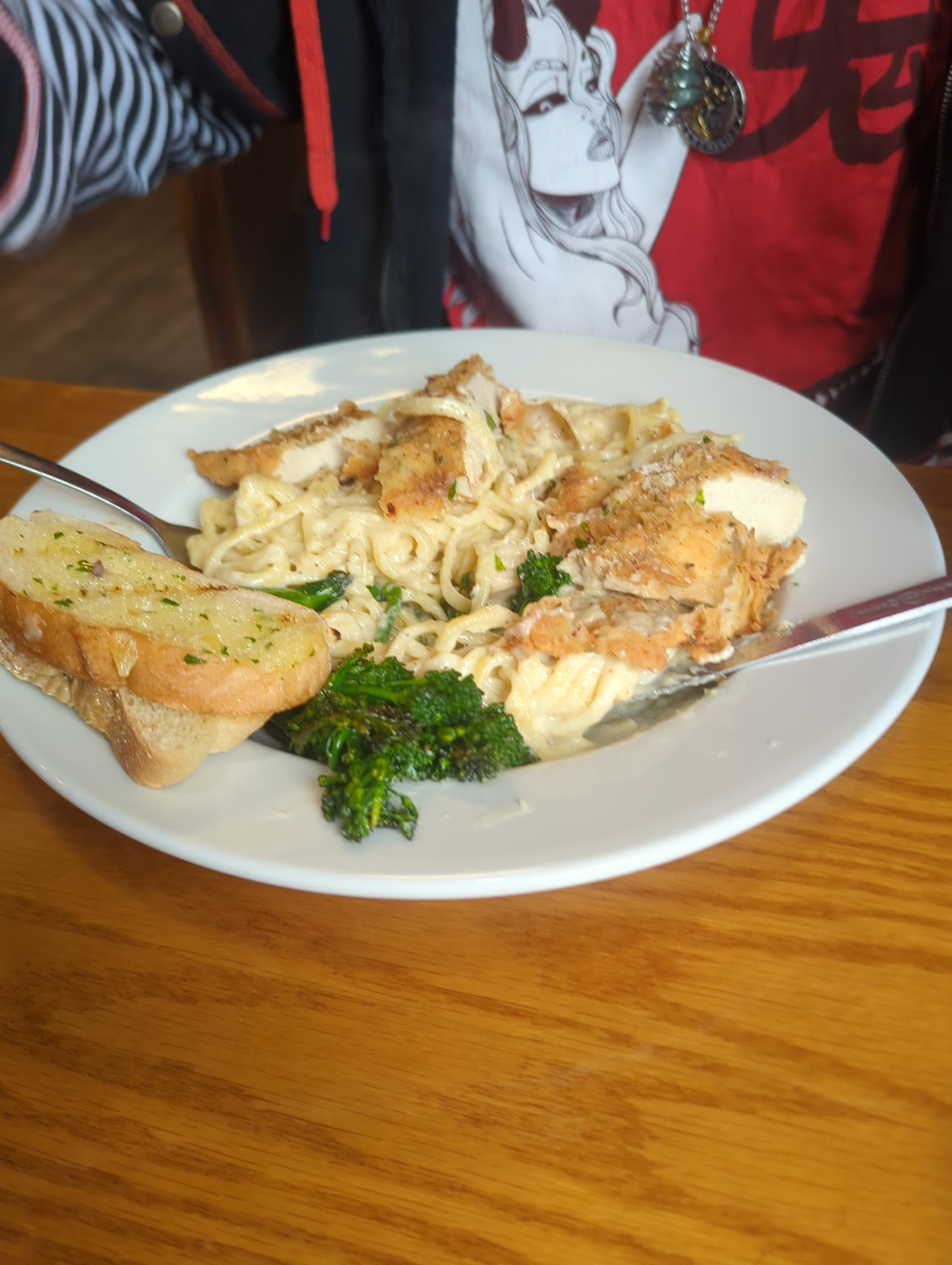 We started with an appetizer of hand breaded mozzarella sticks and they were delicious, you could tell they make them in house and not some frozen fast food sticks. We placed our order all at once and had it staggard so we could enjoy the food at our own pace. My wife ordered the create your own pasta dish with linguine Alfredo sauce with broccolini and fried chicken, I have no doubt in my mind that they make the sauce in house and it was incredibly delicious. The chicken had a nice hand breaded crispy fry on it and cooked to perfection, this was also not previously frozen pre breaded chicken strips but it was a nice full chicken breast. I myself had the "Italian BLT",What a sandwich the bread was toasted up nicely with their herbed butter they used delicious prosciutto instead of traditional bacon with sliced tomatoes not diced and romaine lettuce. The flavors that sandwich had was pure perfection and I can honestly say any BLT I will have in the future will pale in comparison. My sandwich came with french fries and honestly there isn't much to say on that front aside from the fact they are hand cut natural fries cooked to perfect crisp levels otherwise known in the cooking world as GFB.