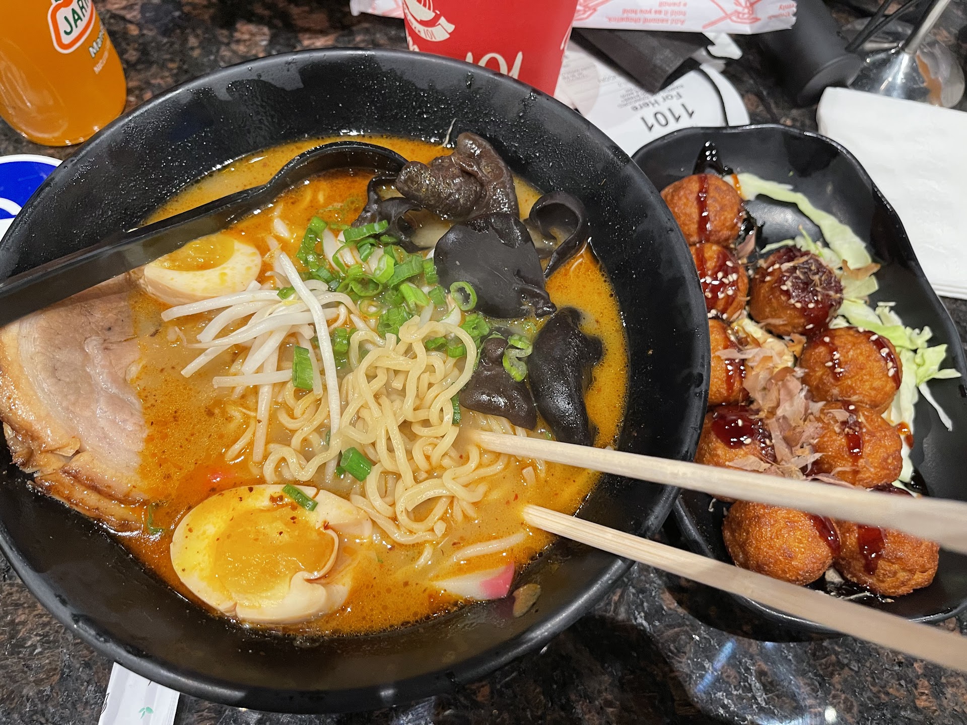 Not a bad ramen place. It is convenient, fast and priced reasonably. However this is not the most authentic ramen you can get around the area. The broth is tasty but overly salty. The chashu is okay. The soft boiled eggs are surprisingly good. We also ordered a side of kaarage. It's tad bit too greasy to our liking. Again, if you have a sudden craving of a ramen bowl, this is not a bad choice. But if you are looking for that rich, authentic broth with Japanese ramen (the fresh made kind), you may want to look around. The restaurant setup is simple and clean. Napkins and chopsticks are provided on all tables. Customer service is alright, it's kinda like a ramen fast-food restaurant so no body will come up to check on with you, which I actually appreciate. There are quite some street parking spots but since it's the downtown area, plan ahead if you are driving especially during the weekends. There are two free parking structures around too so parking shouldn't be...