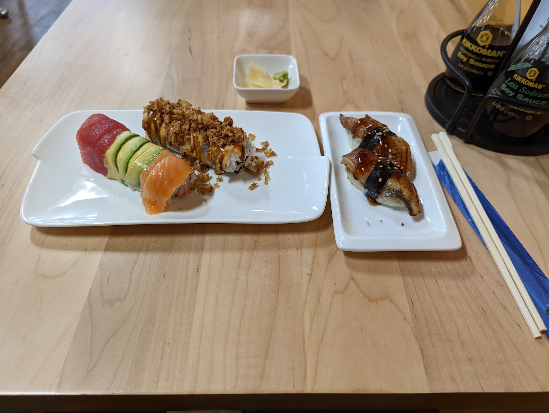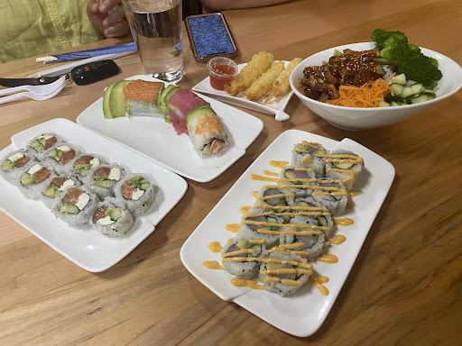 My husband and I came for the first time tonight, we each got a poke bowl and a miso soup. You order and pay at the counter, then choose a table and they bring the food to you. It's a very cute dining area but "casual dining" in the sense that they don't wait on you after bringing the food and you bus your own table when you're done. The food was prepared quickly after we ordered and was brought to our table in about five minutes. The miso soups were a good portion size and loaded with seaweed and tofu, and the broth was very flavorful! The poke bowls were also a good portion size, the fish tasted fresh and the other toppings were also fresh and crisp. Not too heavy on the sauce. I was very full after finishing but not to the point of regret. For dessert we each got one of the fruit filled cookies made by a local baker. Drinks, soups, poke bowls, and cookies for two people came to $40 which in this economy is a pretty cheap date! We will definitely be coming back! I would also suggest this place as a nice lunch spot to meet up with friends. I'm looking forward to trying either another poke bowl option or some of the sushi rolls on a...