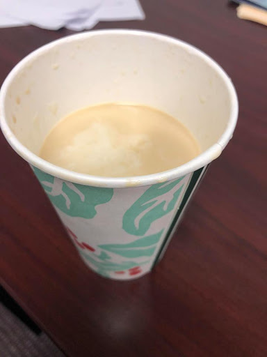 They proceeded to hand my husband his medium drink, and what looked like a child's sized cup of hot chocolate. We told the woman we had ordered a venti, and she took the cup back in and disappeared around the corner. A minute later, she comes back with a venti cup and hands it to us. My husband begins to pull around, and I notice that the cup isn't hot near the top, only up to the middle.